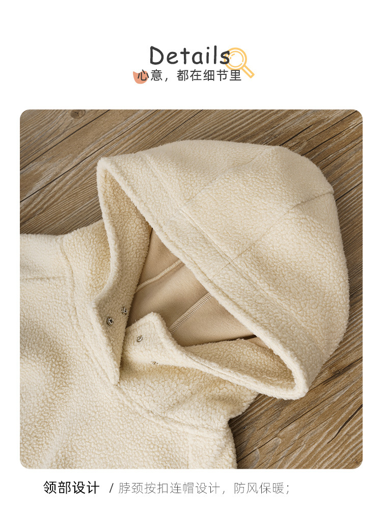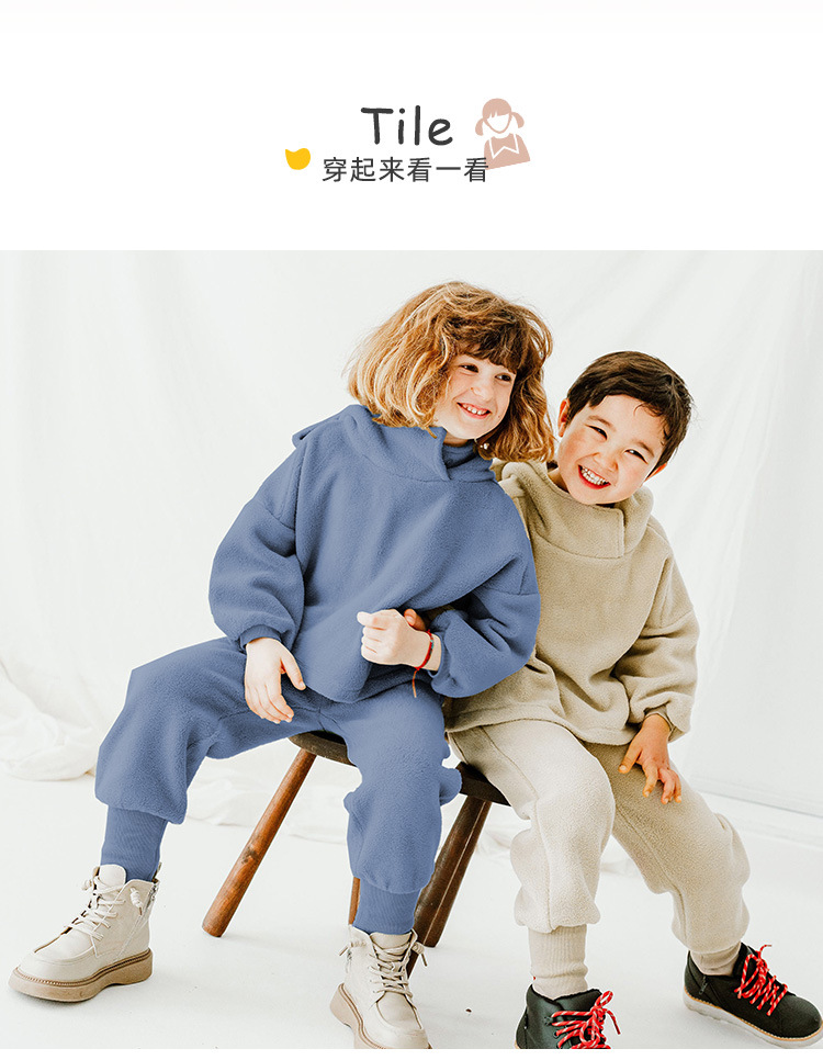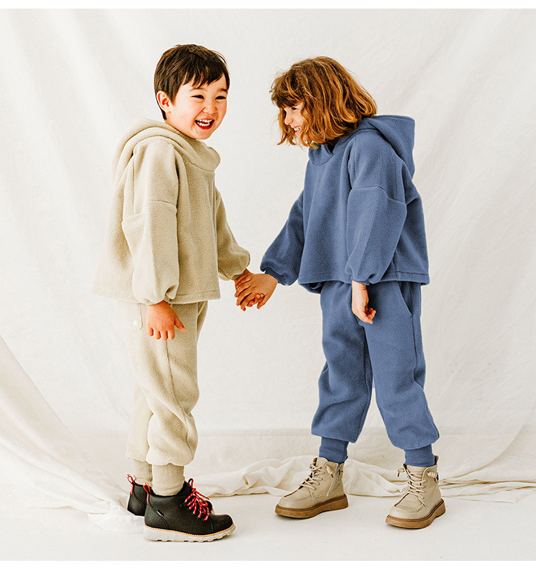 세트 양털 아기 소년과 소녀 가을과 겨울 따뜻한 단색 아동복 스카프 스냅 버튼 후드 풀오버 스웨터 투피스 세트스토어 가기