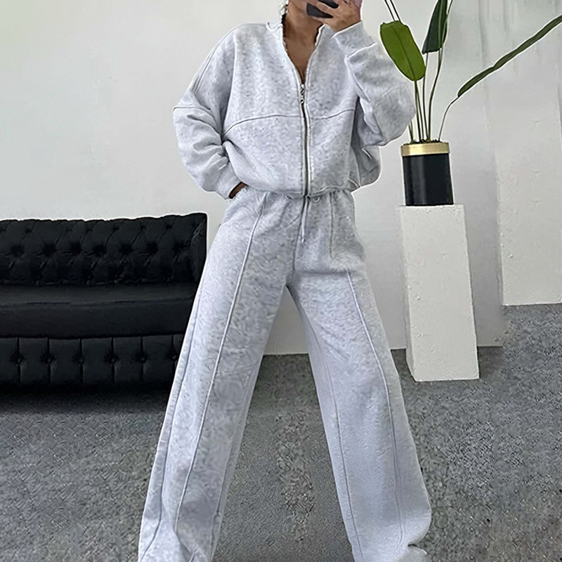 2026년 신상 여성 봄옷, 유럽 및 미국 스타일 바지 세트, 캐주얼 단색 루즈핏 레이스업 스웨트셔츠 스포츠 세트스토어 가기