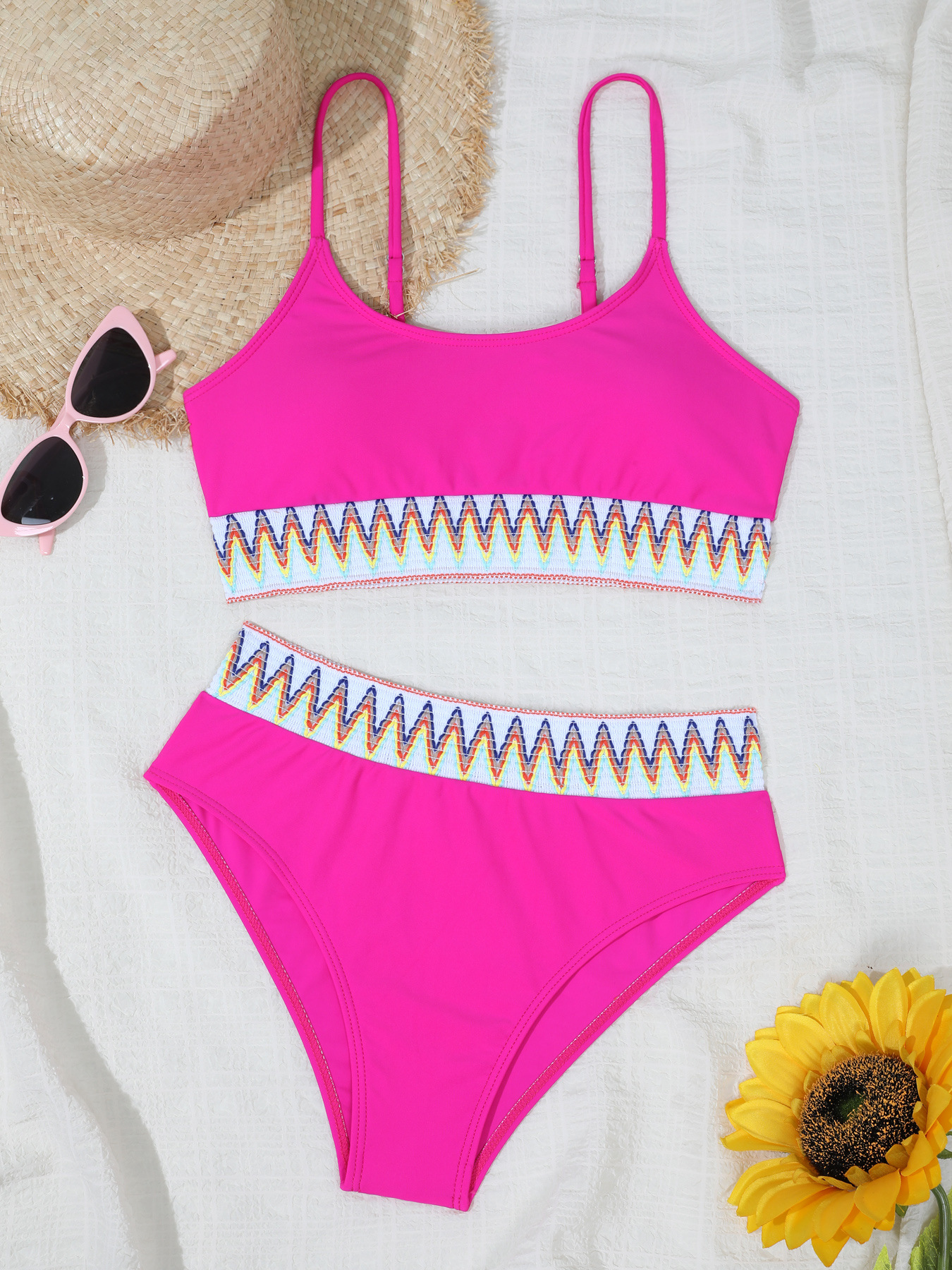 2024 새로운 국경 아마존 유럽과 미국 섹시한 단색 플레이트 높은 허리 분할 비키니 여성 수영복 수영복