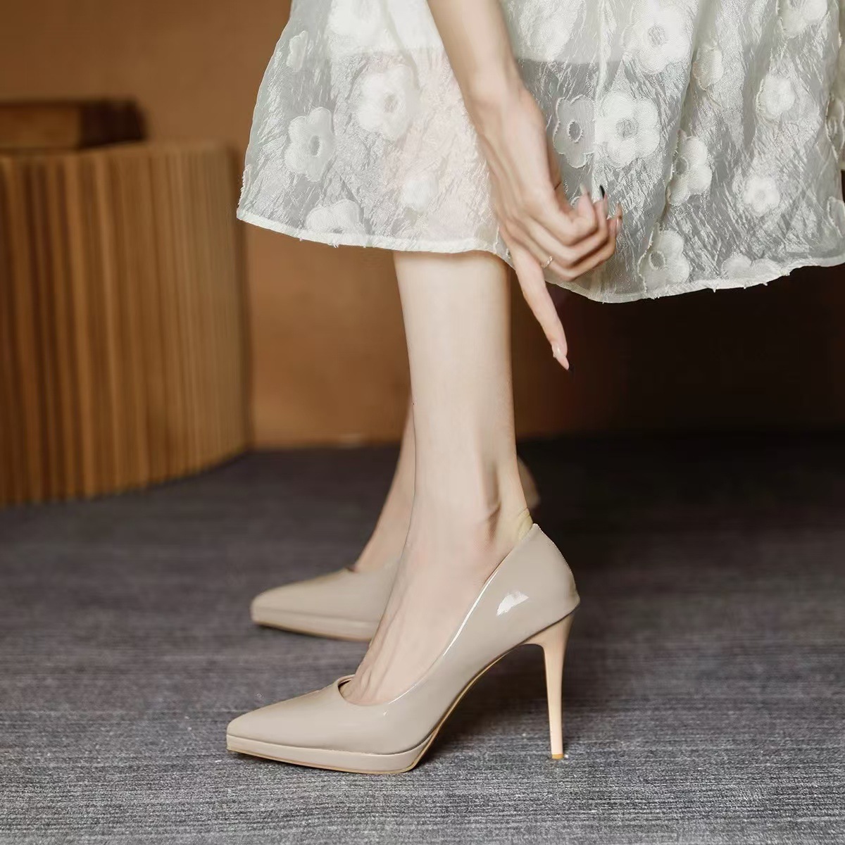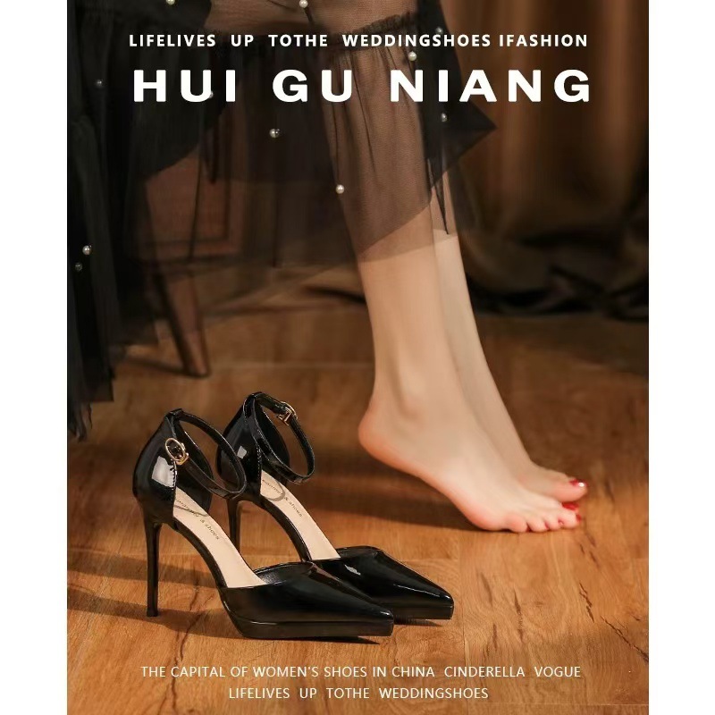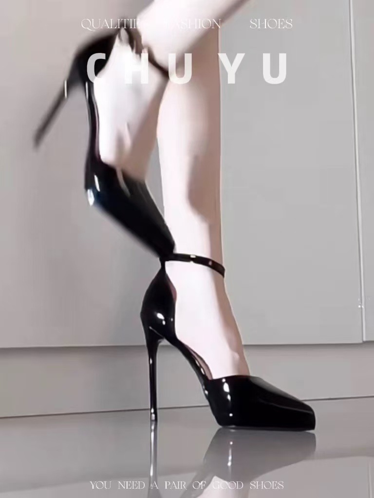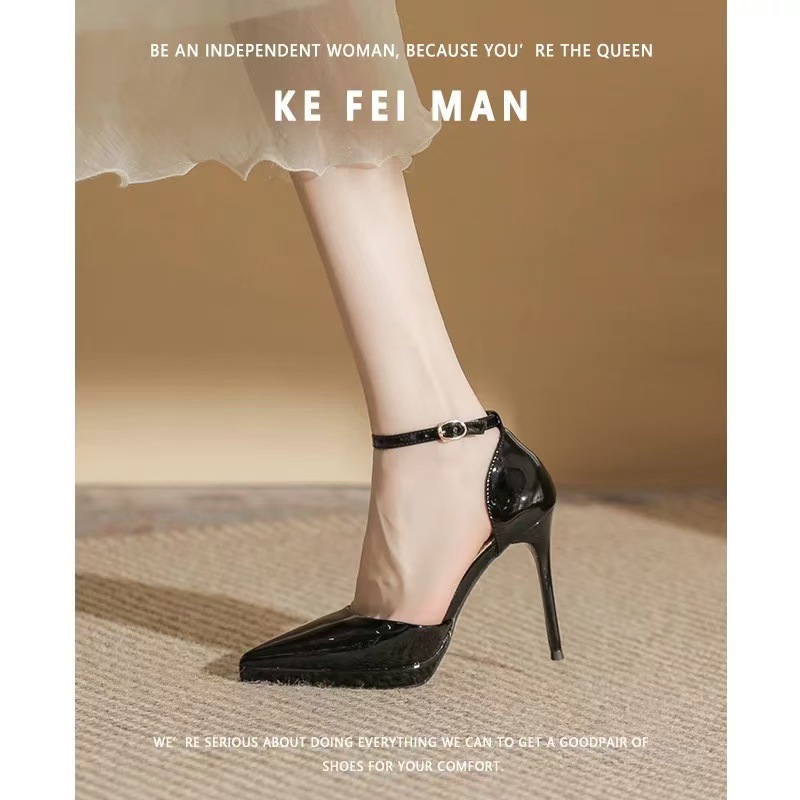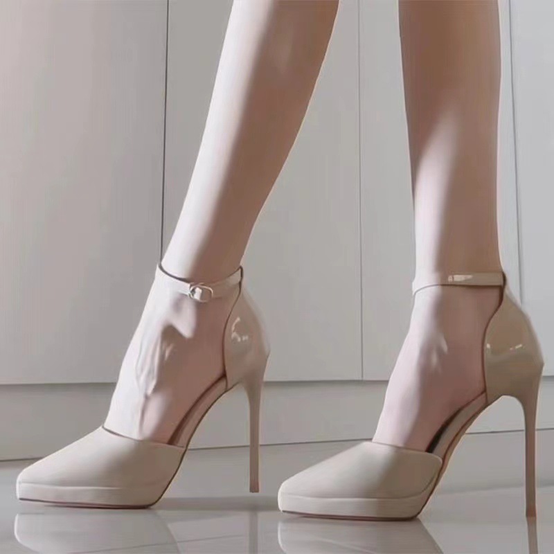 방수 플랫폼 하이힐 여성 새로운 특허 가죽 뾰족한 스틸레토 힐 신발 버클 슈퍼 하이 우아한 할로우 샌들 플러스 사이즈스토어 가기