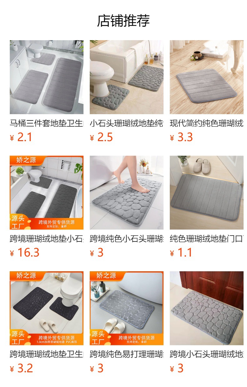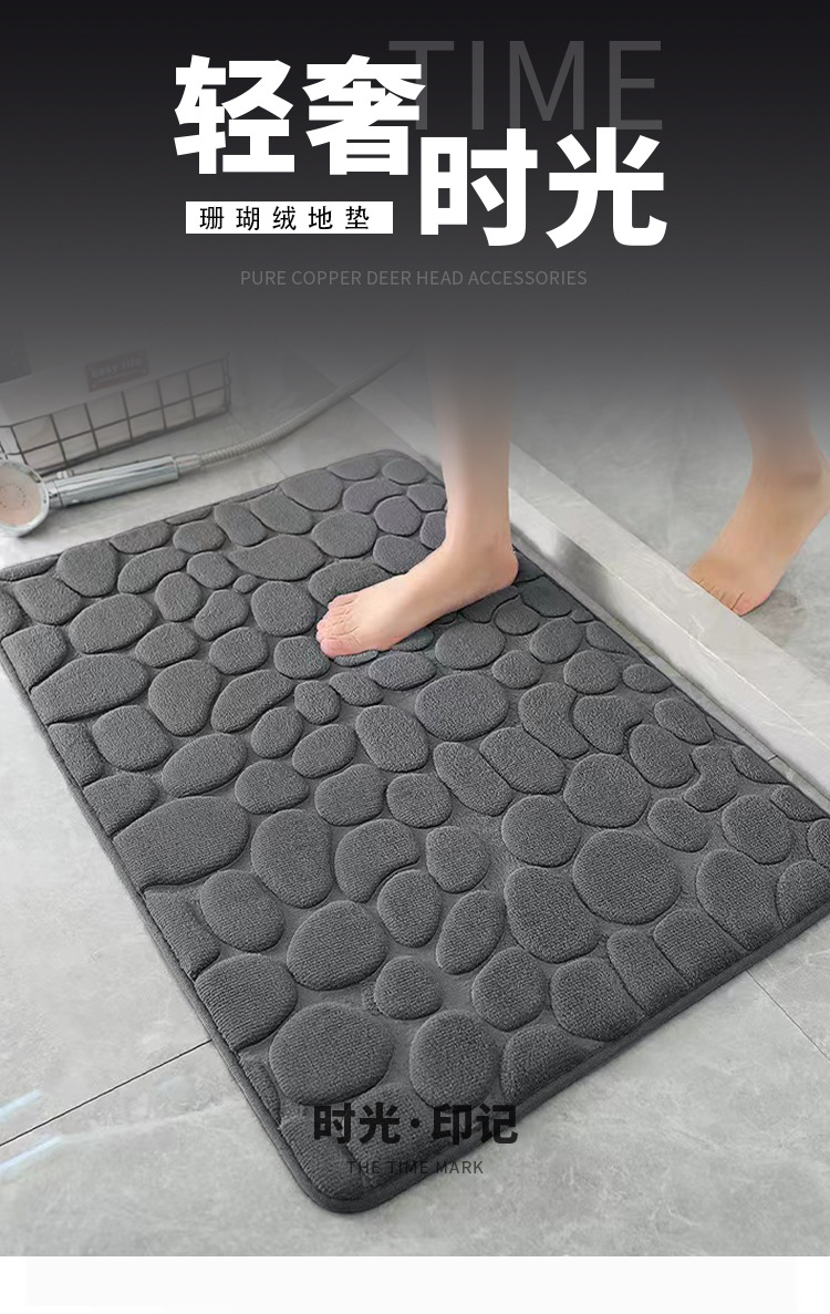 단색 산호 양털 바닥 매트 직사각형 작은 돌 바닥 매트 현대 간단한 바람 욕실 미끄럼 방지 매트 공장 직접 공급스토어 가기