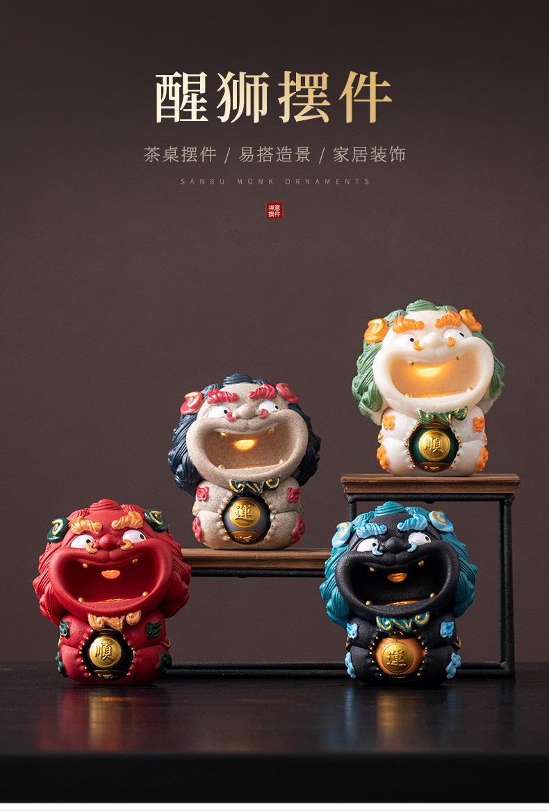 중국 스타일 귀여운 돌 사자 장식품 홈 거실 사무실 와인 캐비닛 데스크탑 장식 공예품 장식품