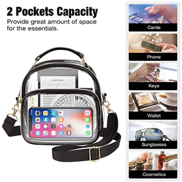 2024 새로운 아마존 여성 투명 크로스 바디 백 친환경 PVC 냄새 나가는 어깨 크로스 바디 핸드백