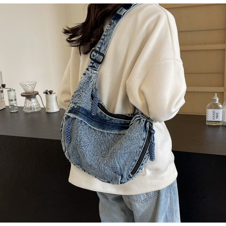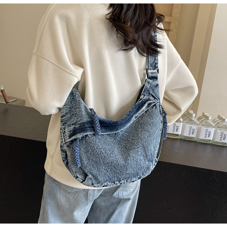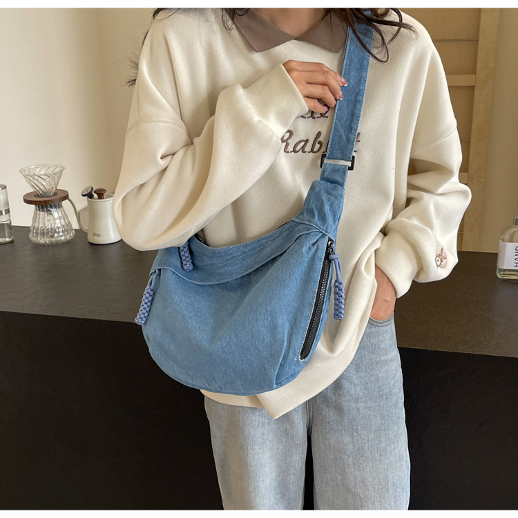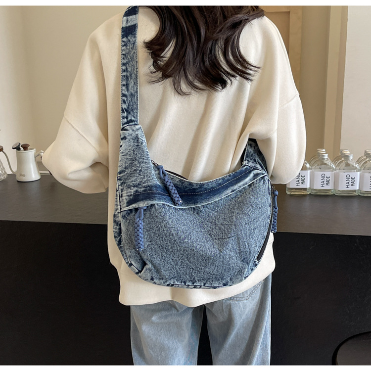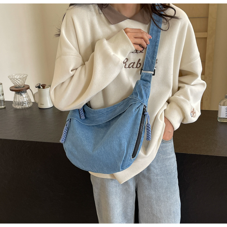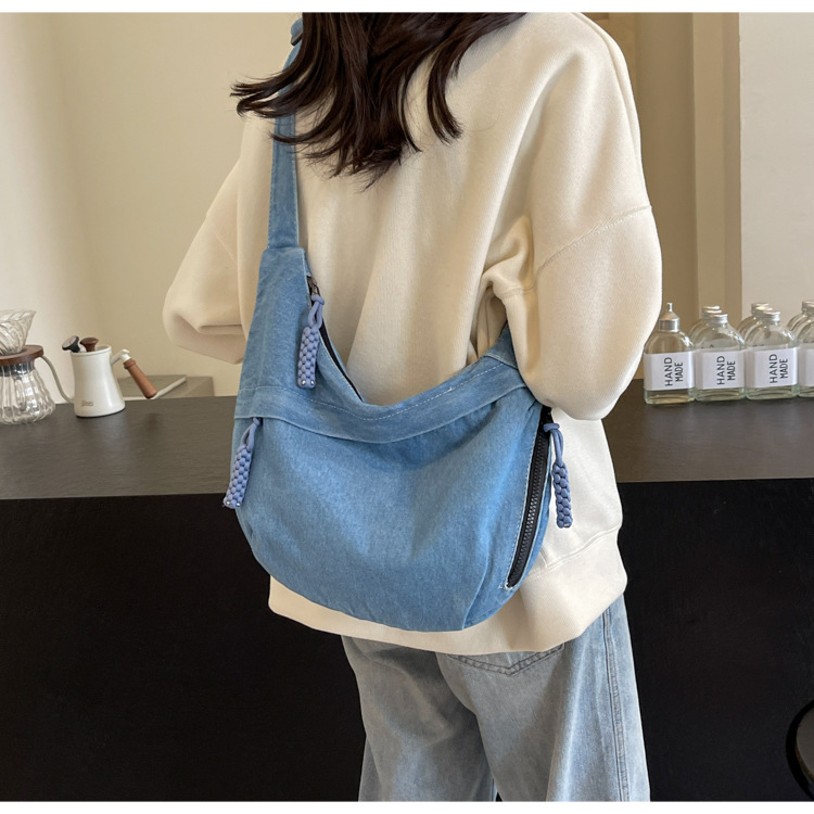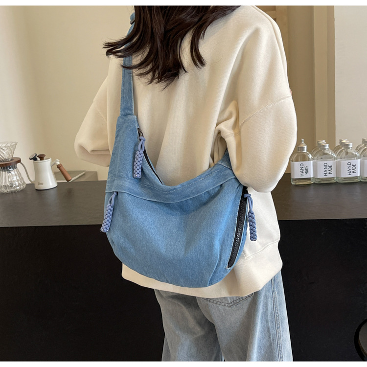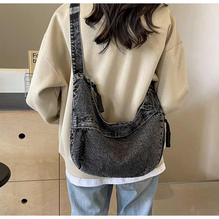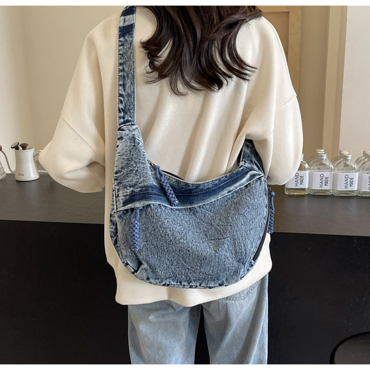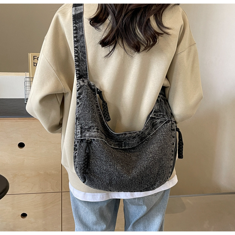 한국식 만두 메신저 가방 카우보이 가을 2024 새로운 빈티지 씻은 데님 대학생 수업 토트 백스토어 가기