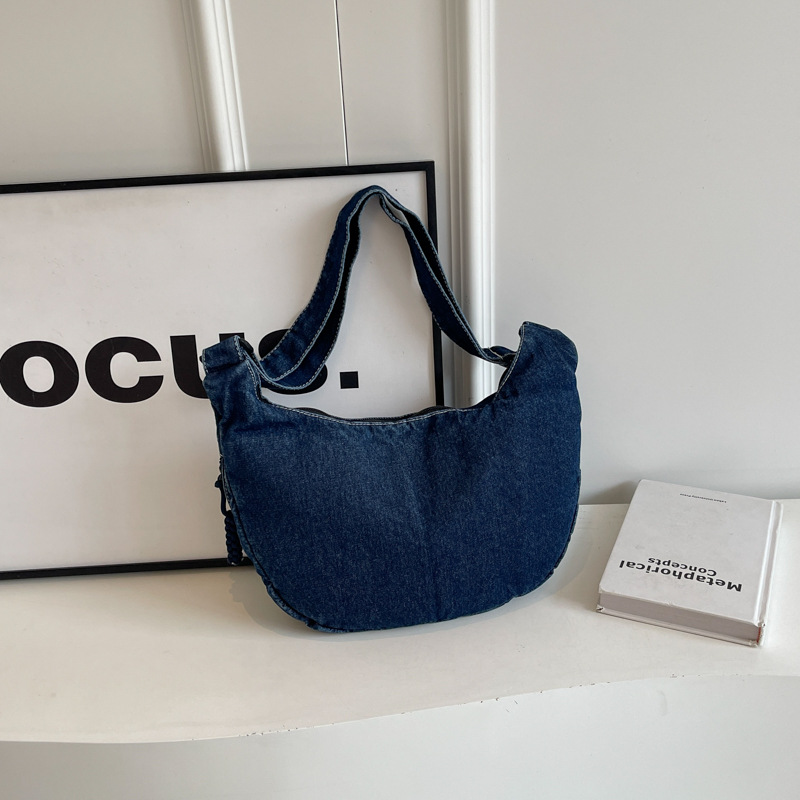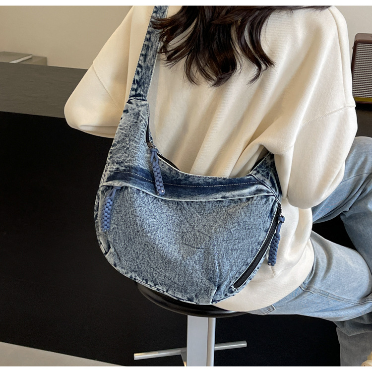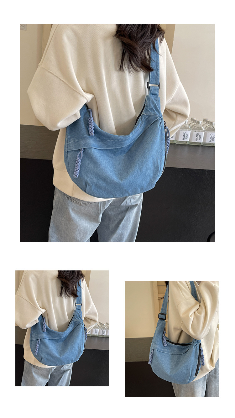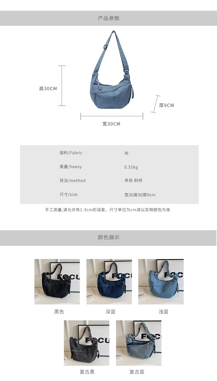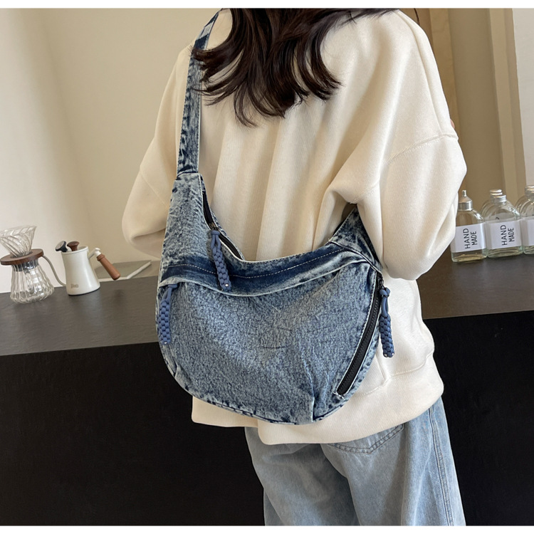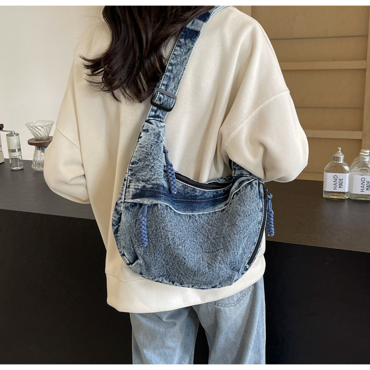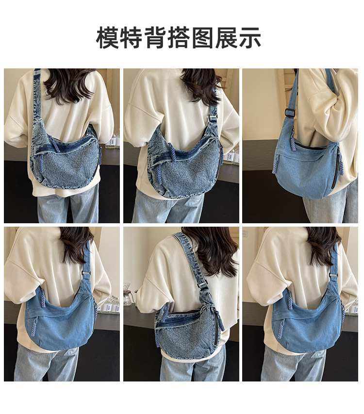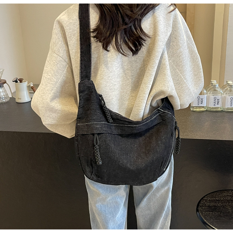 한국식 만두 메신저 가방 카우보이 가을 2024 새로운 빈티지 씻은 데님 대학생 수업 토트 백스토어 가기