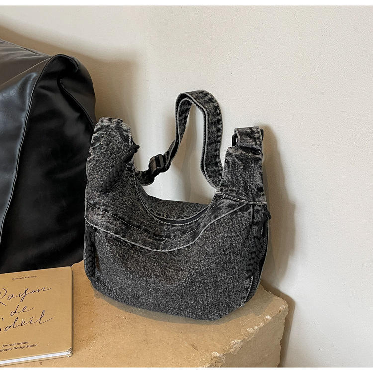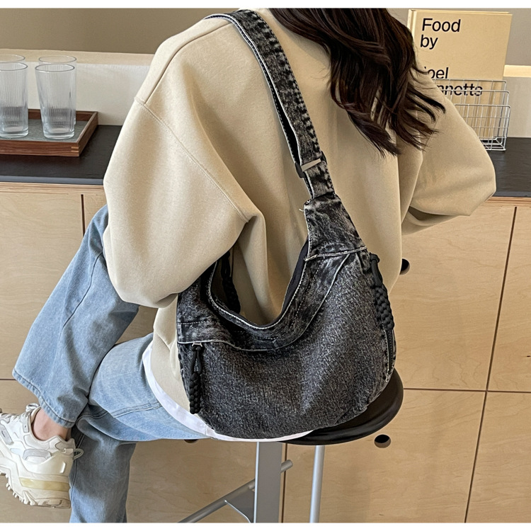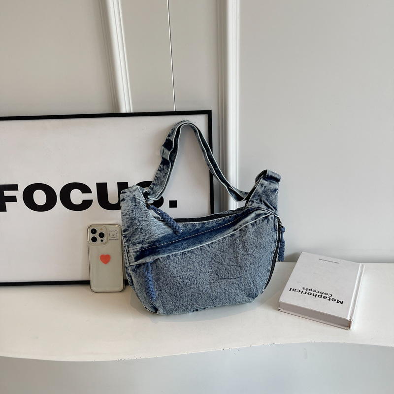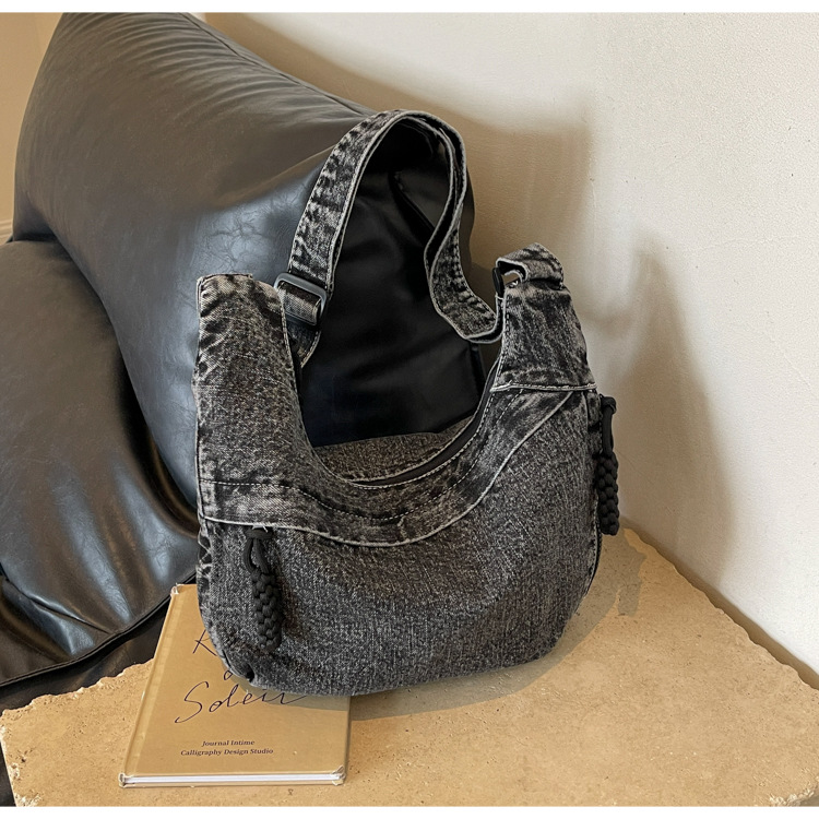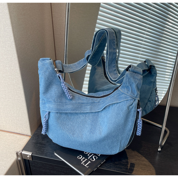 한국식 만두 메신저 가방 카우보이 가을 2024 새로운 빈티지 씻은 데님 대학생 수업 토트 백
