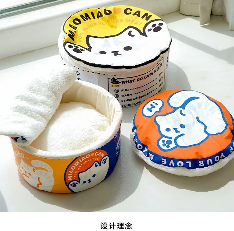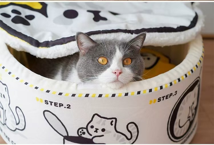 인스턴트 국수 고양이 사육장 겨울 따뜻한 폐쇄 형 인스턴트 국수 매트 강아지 고양이 용품 귀여운 만화 강아지스토어 가기
