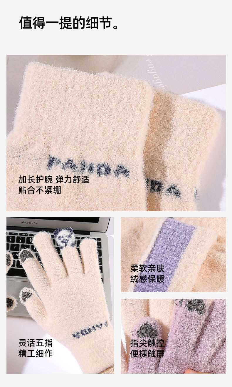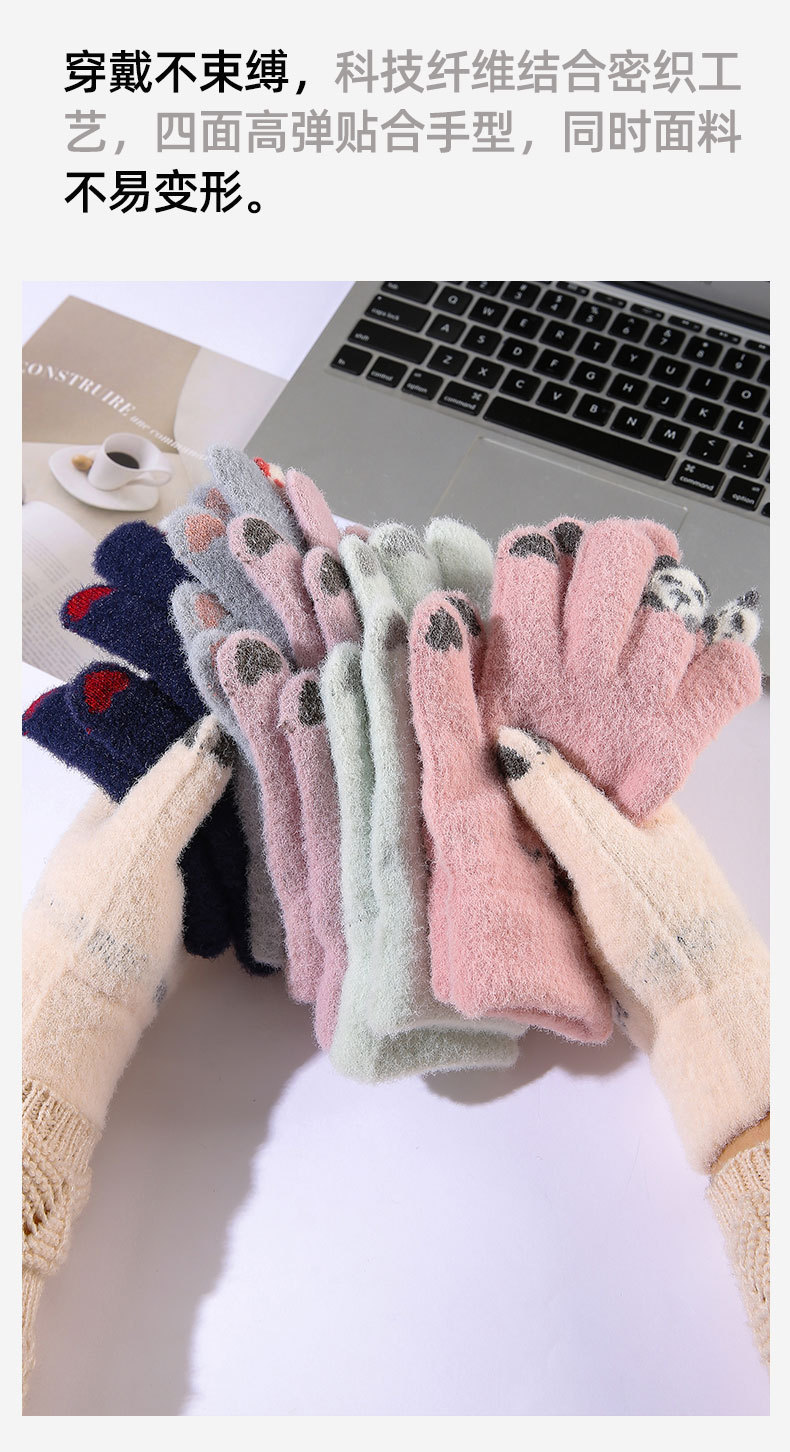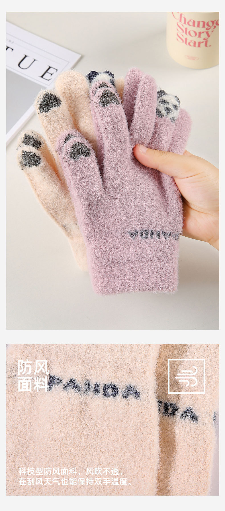 指头熊可爱加绒加厚手套女ins保暖学生骑车防风防寒可触屏冬季男
