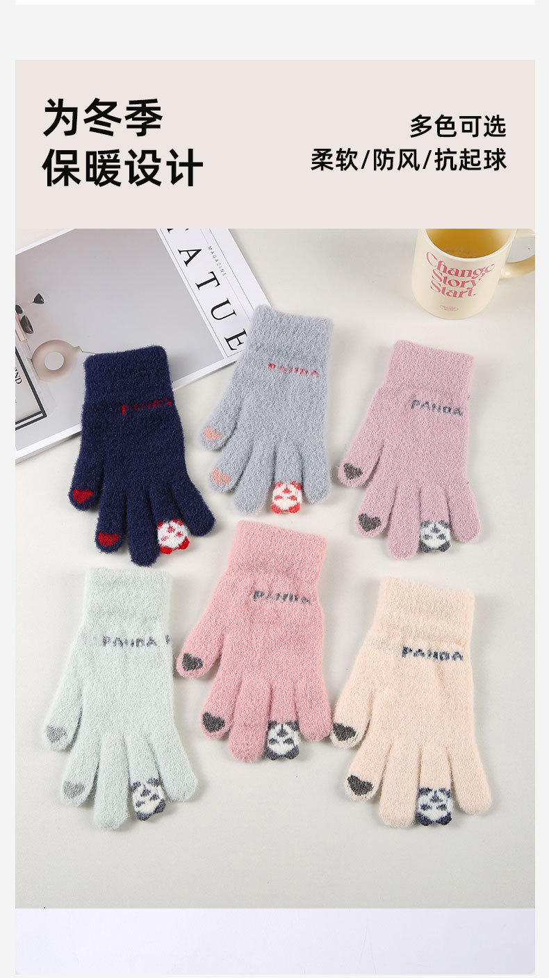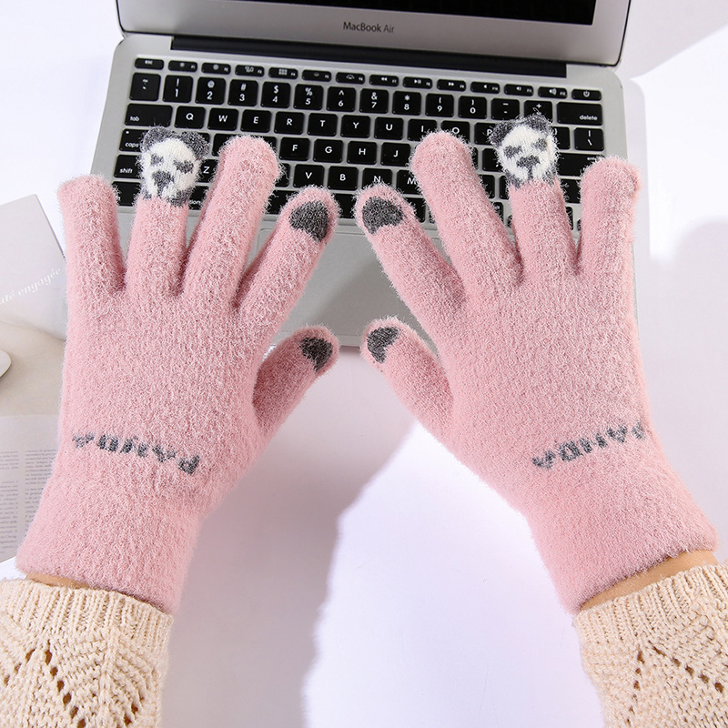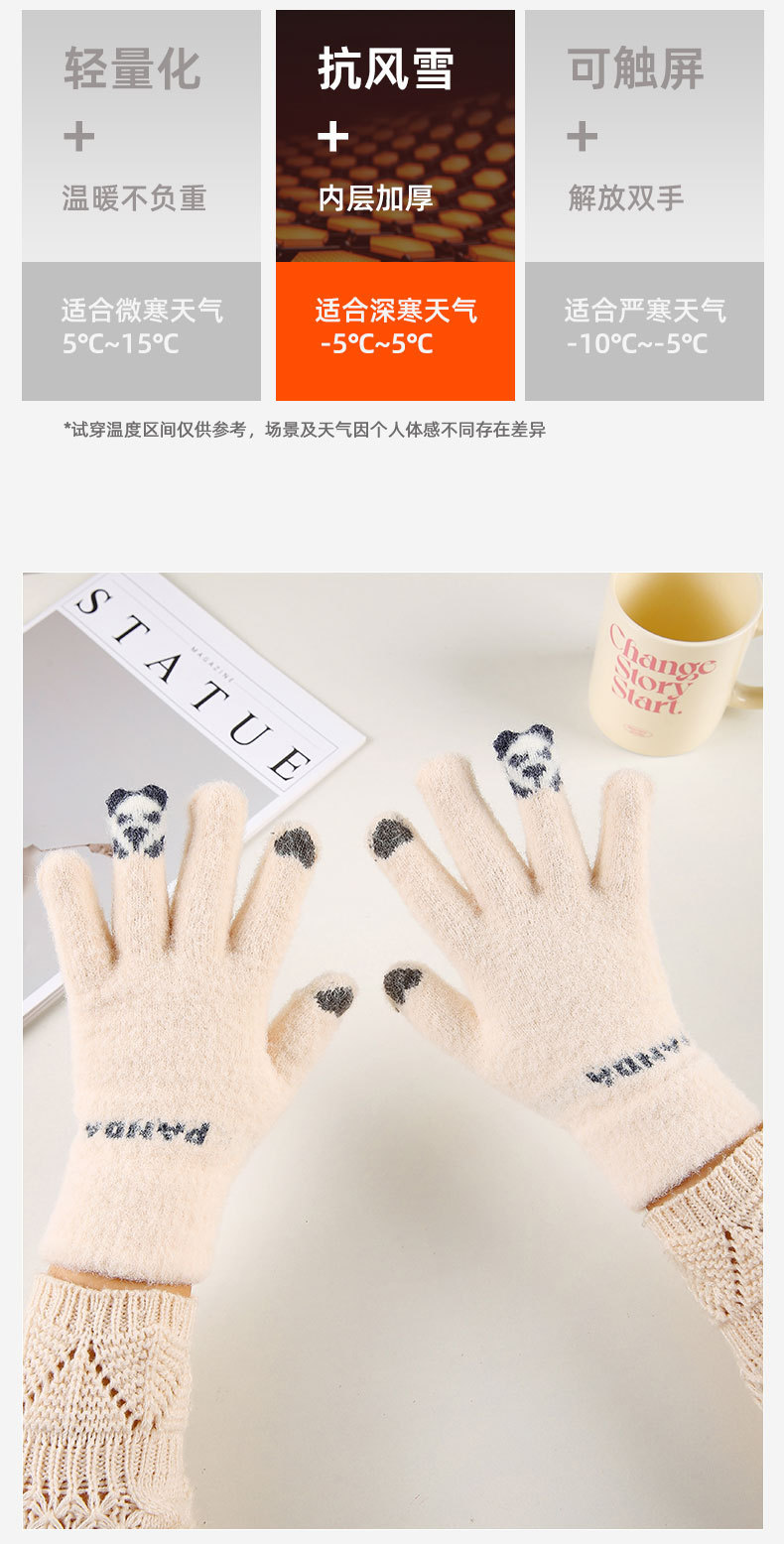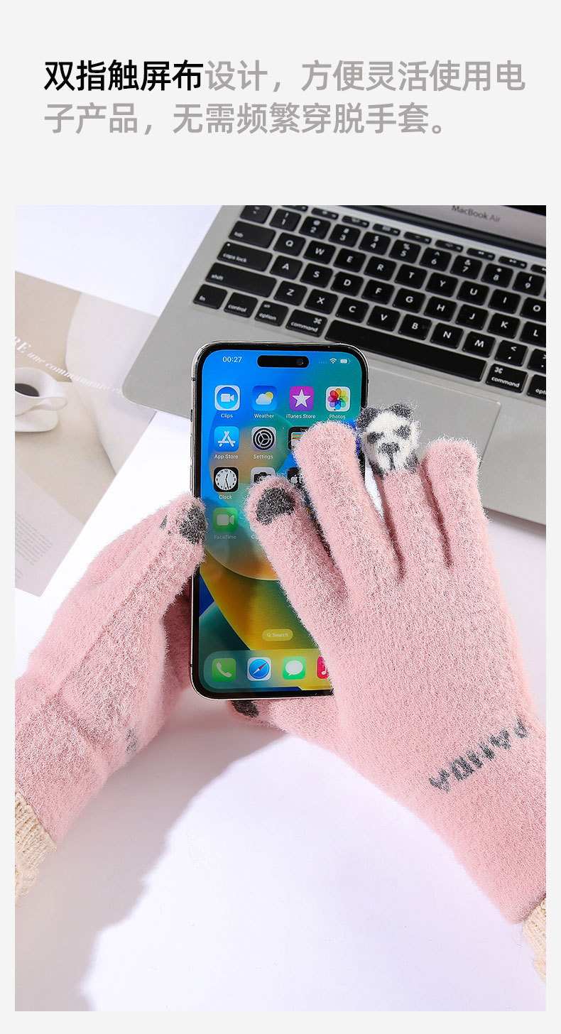 指头熊可爱加绒加厚手套女ins保暖学生骑车防风防寒可触屏冬季男