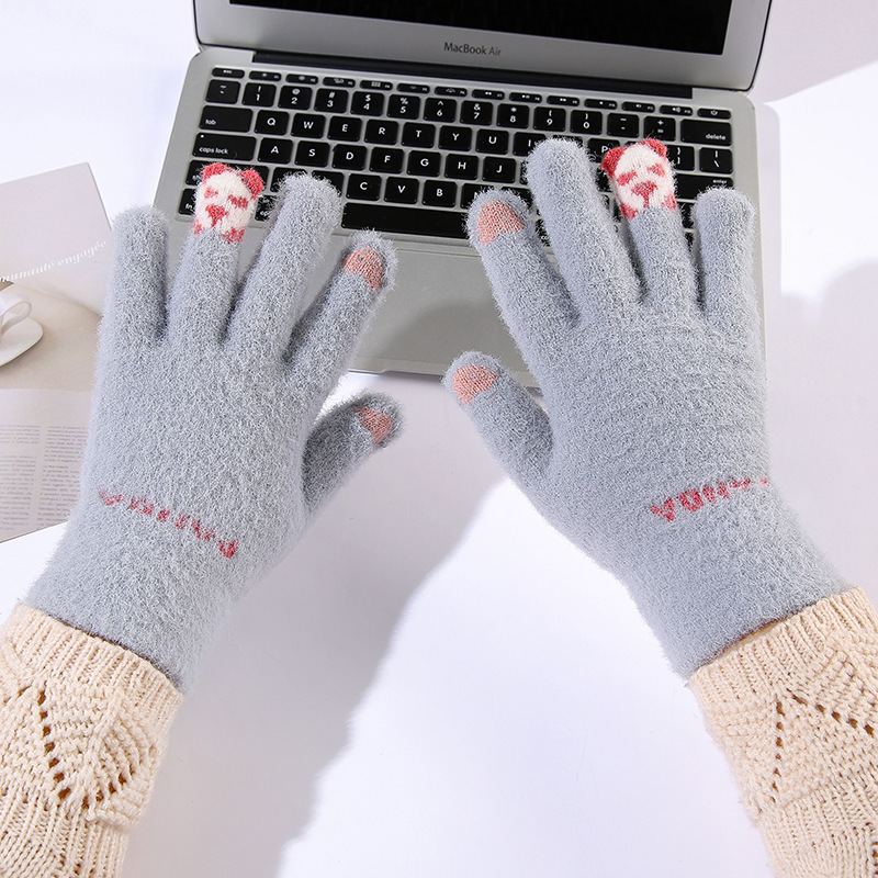핑거 베어 귀여운 기모 두꺼운 장갑 여성용 Ins 따뜻한 학생 사이클링 방풍 방지 터치 스크린 겨울 남성