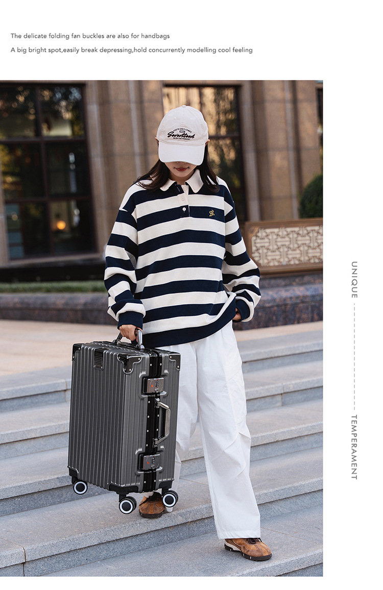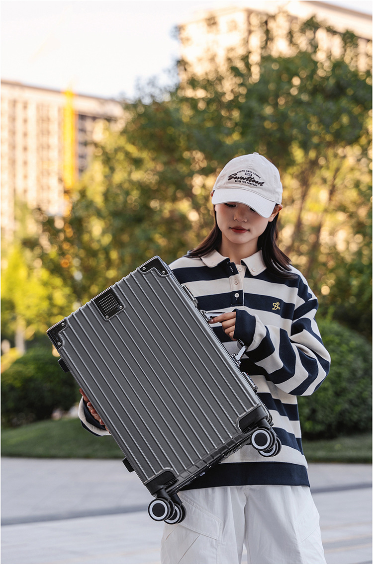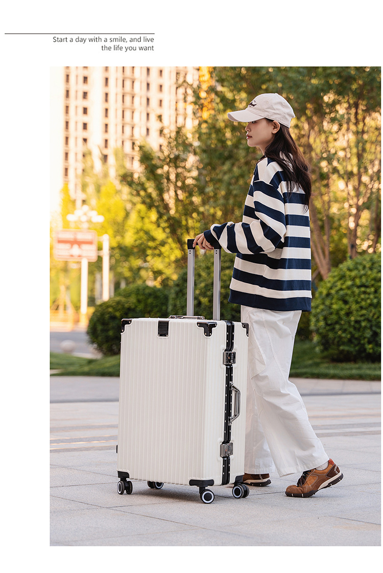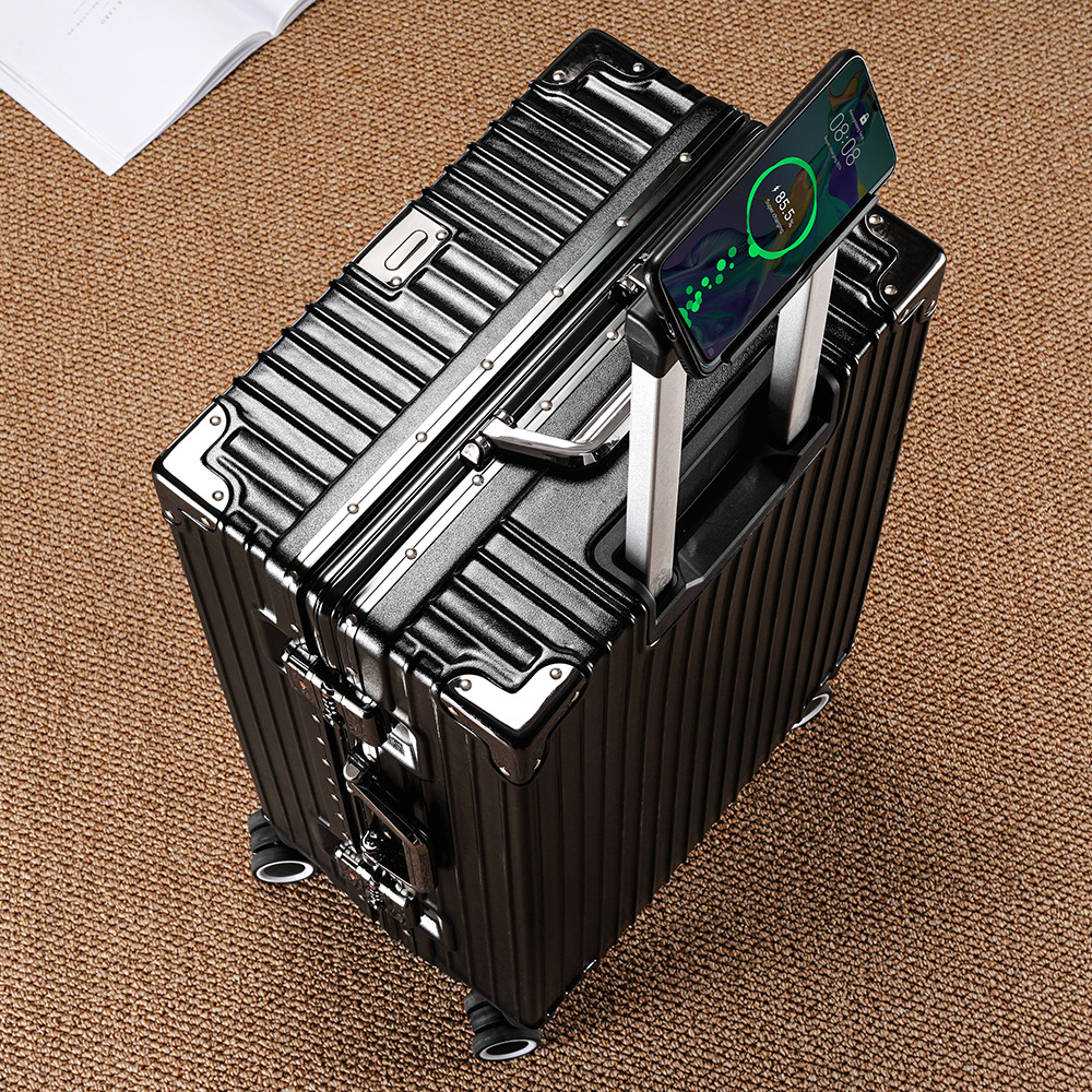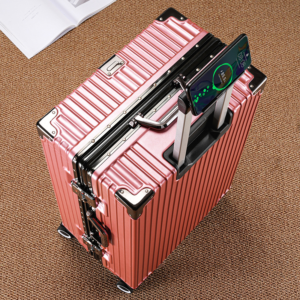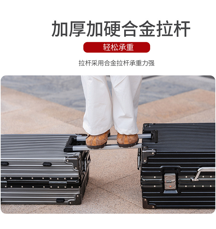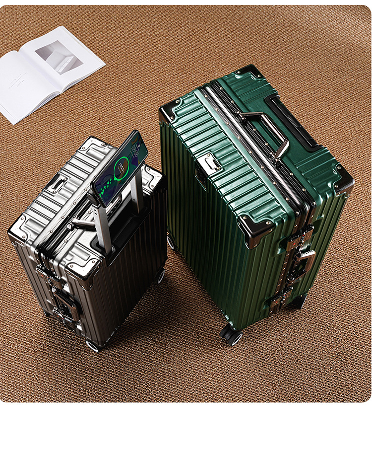 브래킷이 장착 된 새로운 여행 24 인치 비밀번호 상자 학생 짐 알루미늄 프레임 막대 대용량 상자 직각스토어 가기