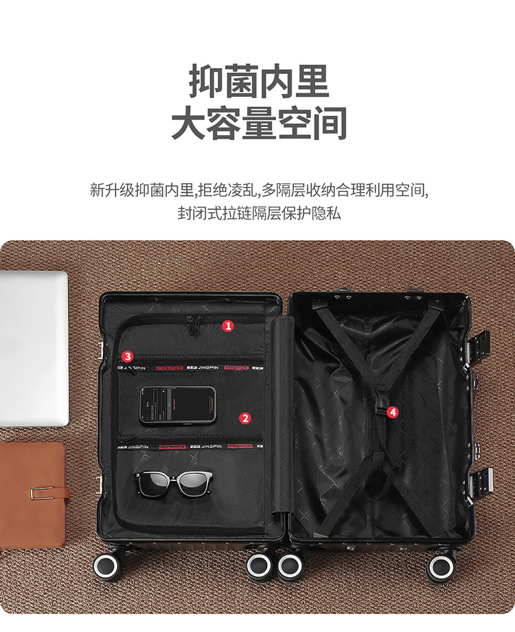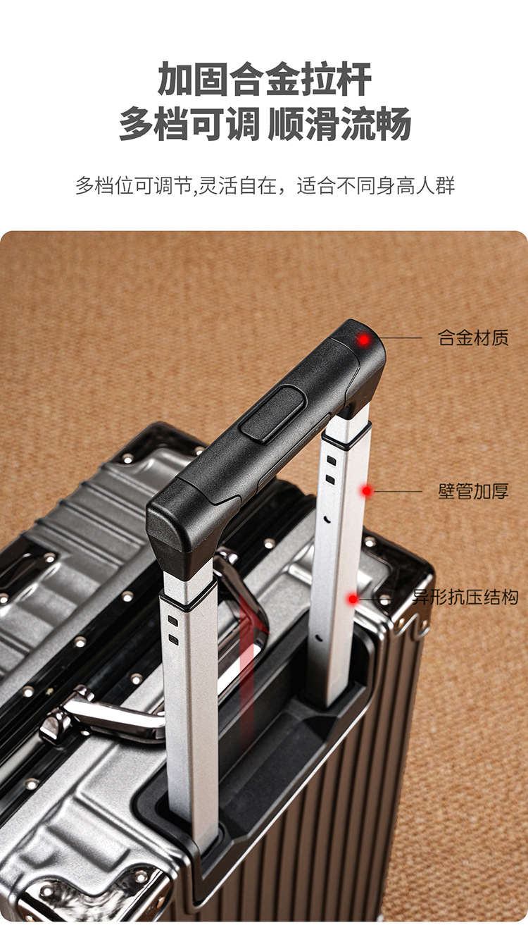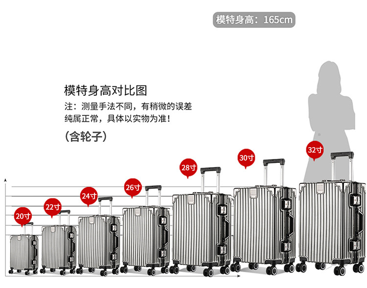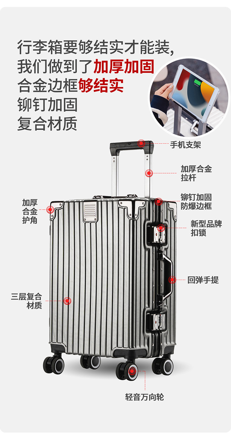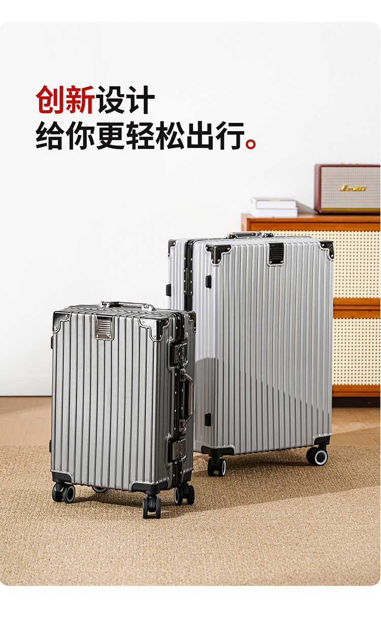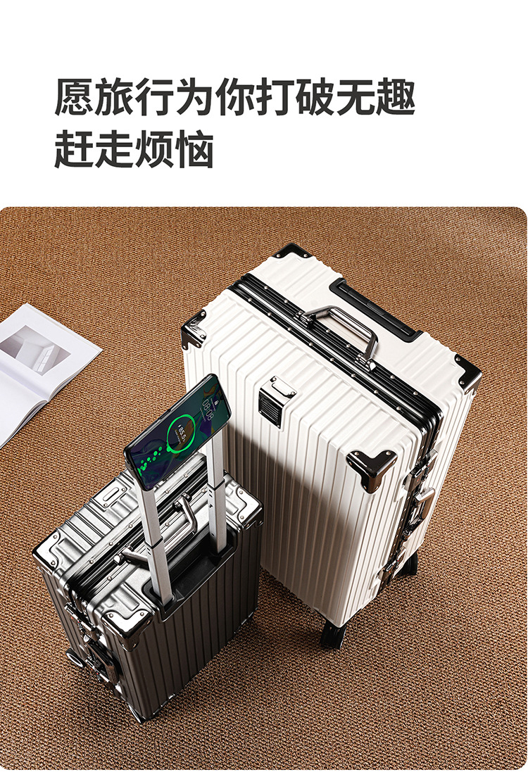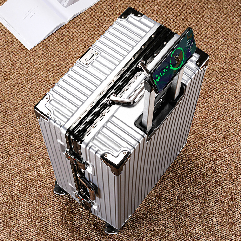 브래킷이 장착 된 새로운 여행 24 인치 비밀번호 상자 학생 짐 알루미늄 프레임 막대 대용량 상자 직각스토어 가기