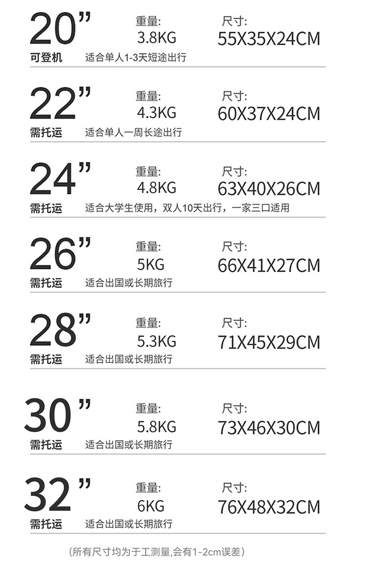 • 30inch [3개의 자물쇠, 일주일 이상 여행]