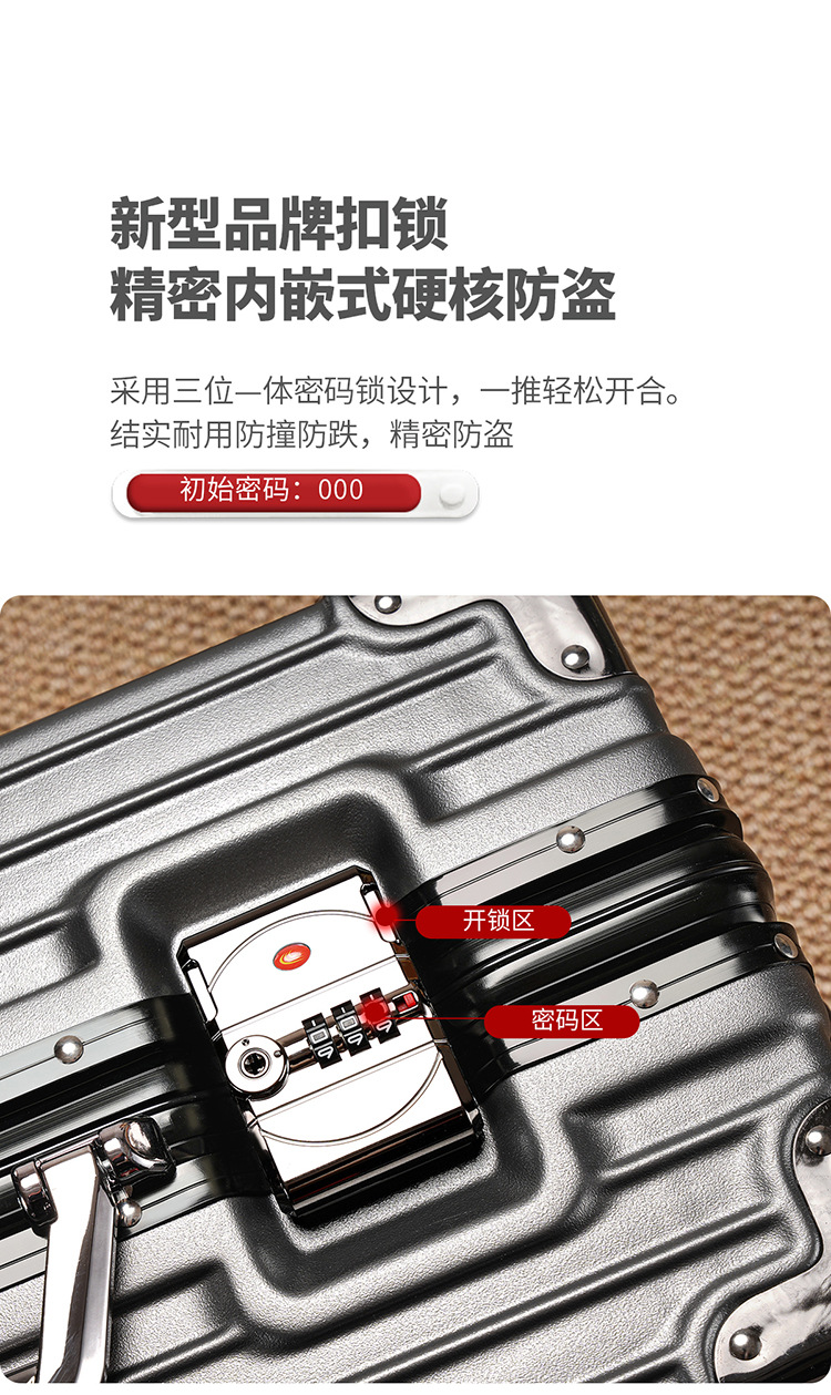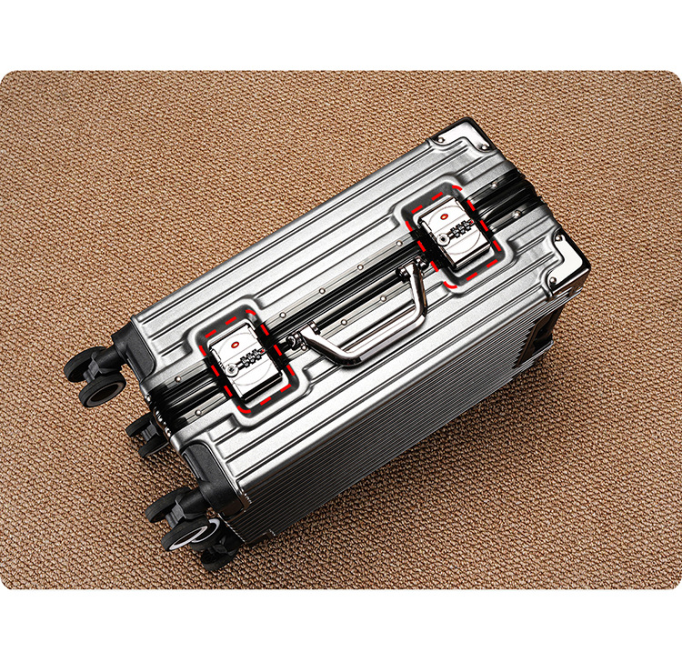 브래킷이 장착 된 새로운 여행 24 인치 비밀번호 상자 학생 짐 알루미늄 프레임 막대 대용량 상자 직각