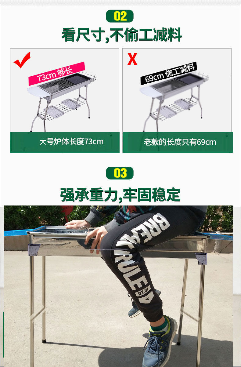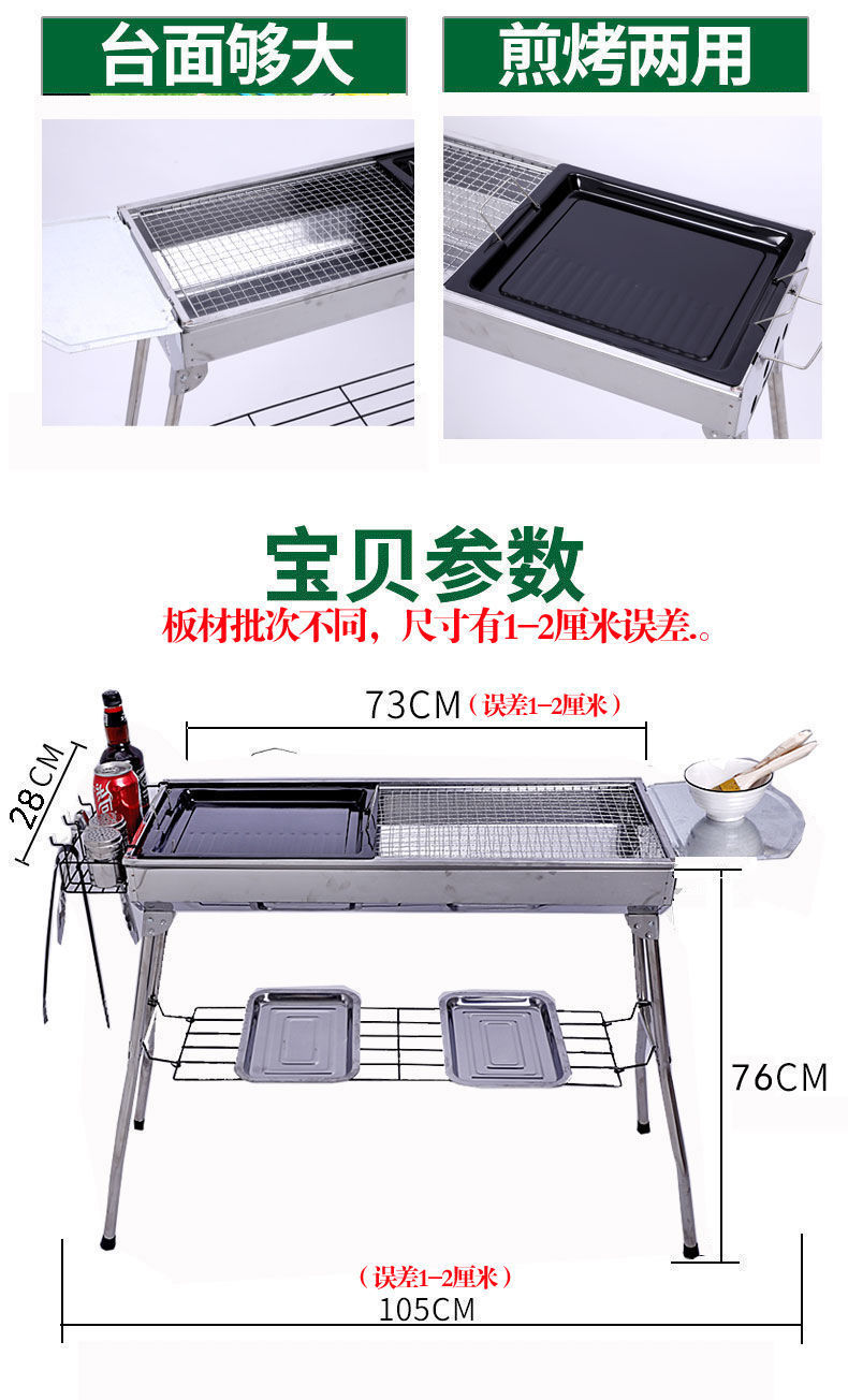 야외 대형 스테인레스 스틸 바베큐 그릴 필드 도구 탄소 그릴 랙 8 명 이상 가정용 숯 그릴