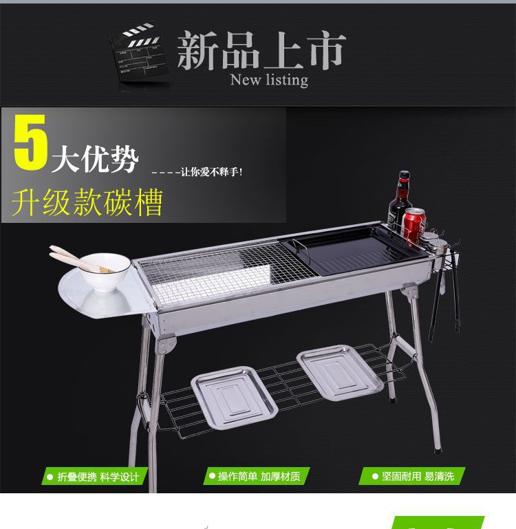 야외 대형 스테인레스 스틸 바베큐 그릴 필드 도구 탄소 그릴 랙 8 명 이상 가정용 숯 그릴스토어 가기