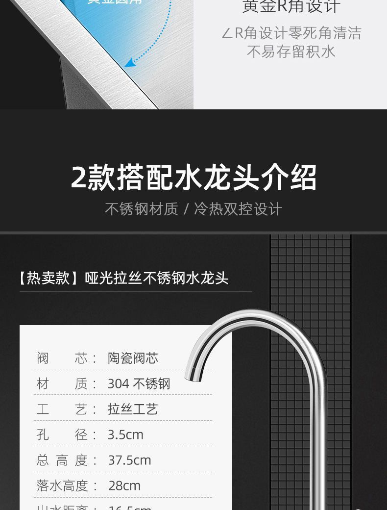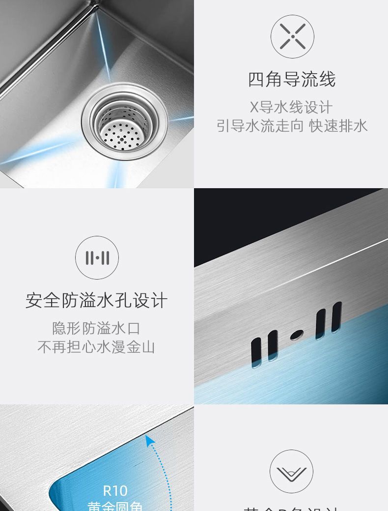• [두꺼운 수제 단일 슬롯] 45*40-패키지 B(싱크대 + 모든 강철 배수구 + 구리 코어