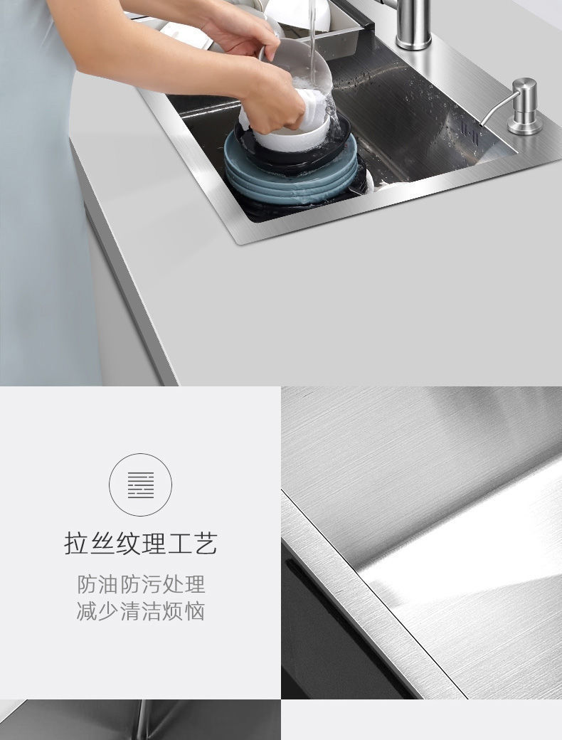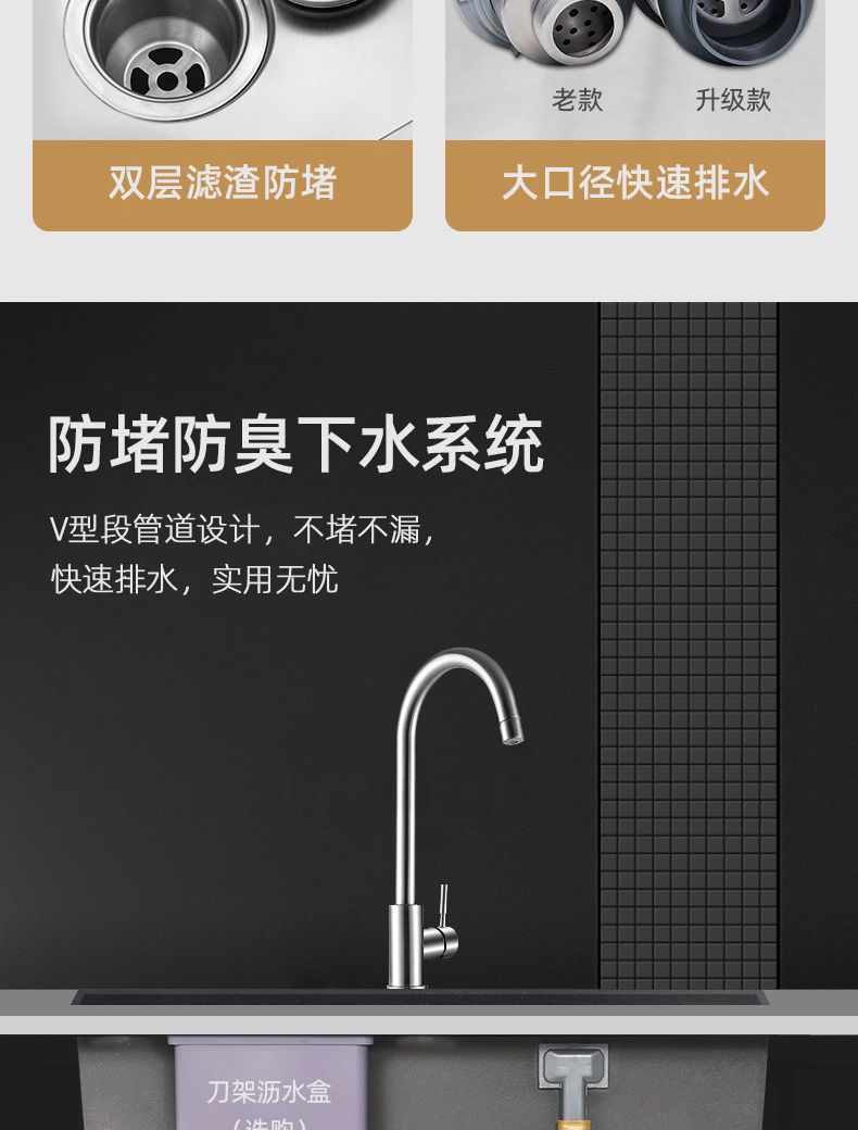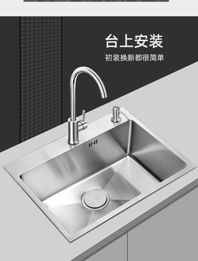 • [두꺼운 수제 단일 슬롯] 60*45 핫 세일-패키지 C(싱크대 + 모든 강철 배수구 +