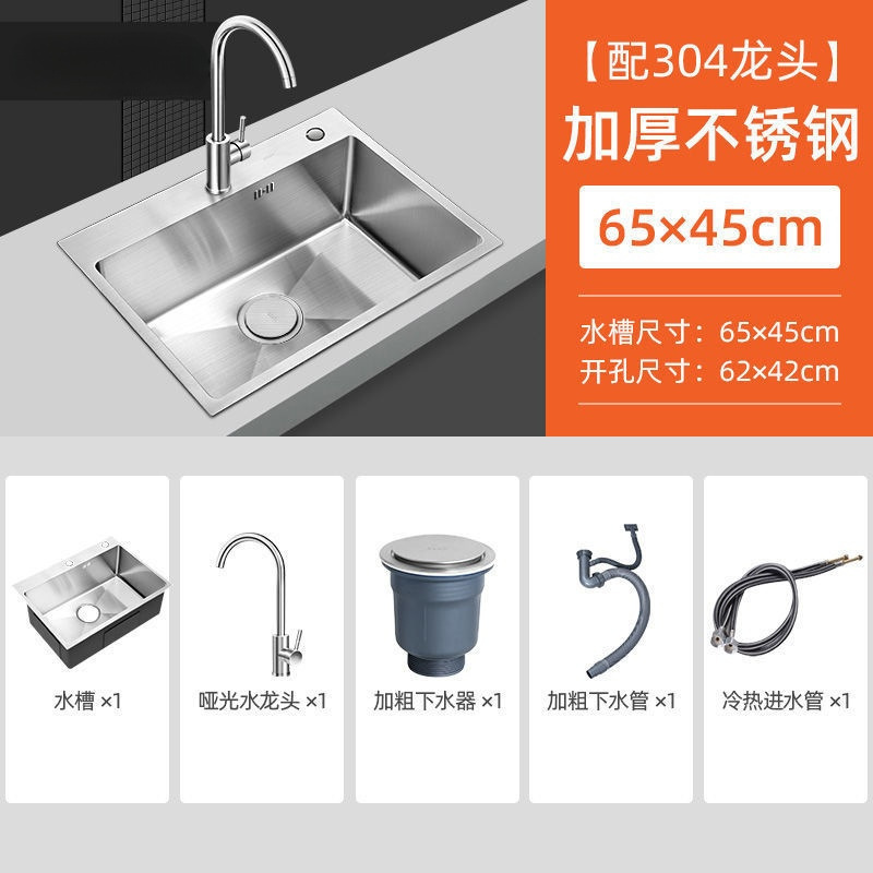 • [두꺼운 수제 단일 탱크] 65*45-패키지 C (싱크대 + 올스틸 배수구 + 식용
