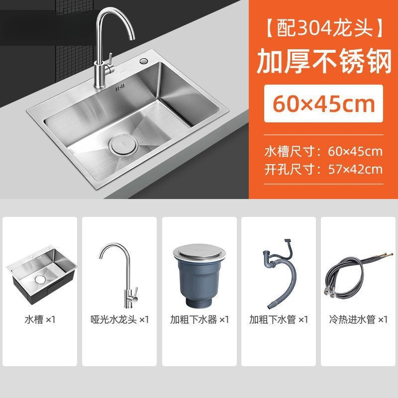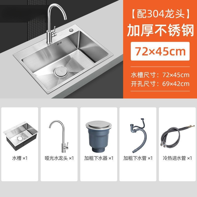 수제 두꺼운 세척 싱크대 가정용 단일 싱크 세트 주방 싱크대 304 스테인레스 스틸 야채 싱크대스토어 가기