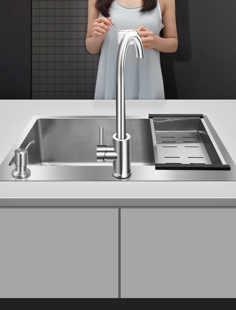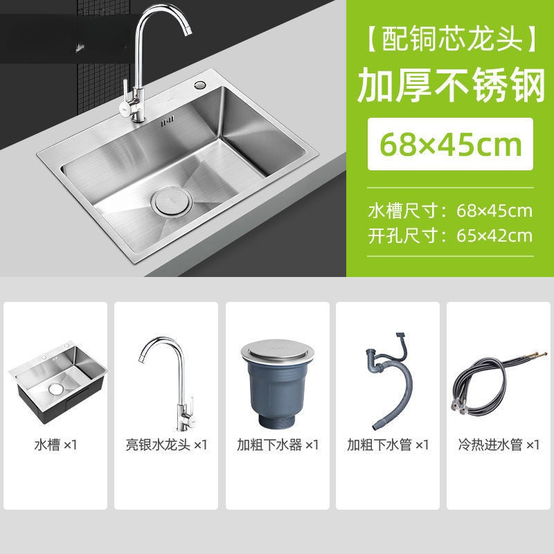 • [두꺼운 수제 단일 탱크] 68*45-패키지 C (싱크대 + 올스틸 배수구 + 식용