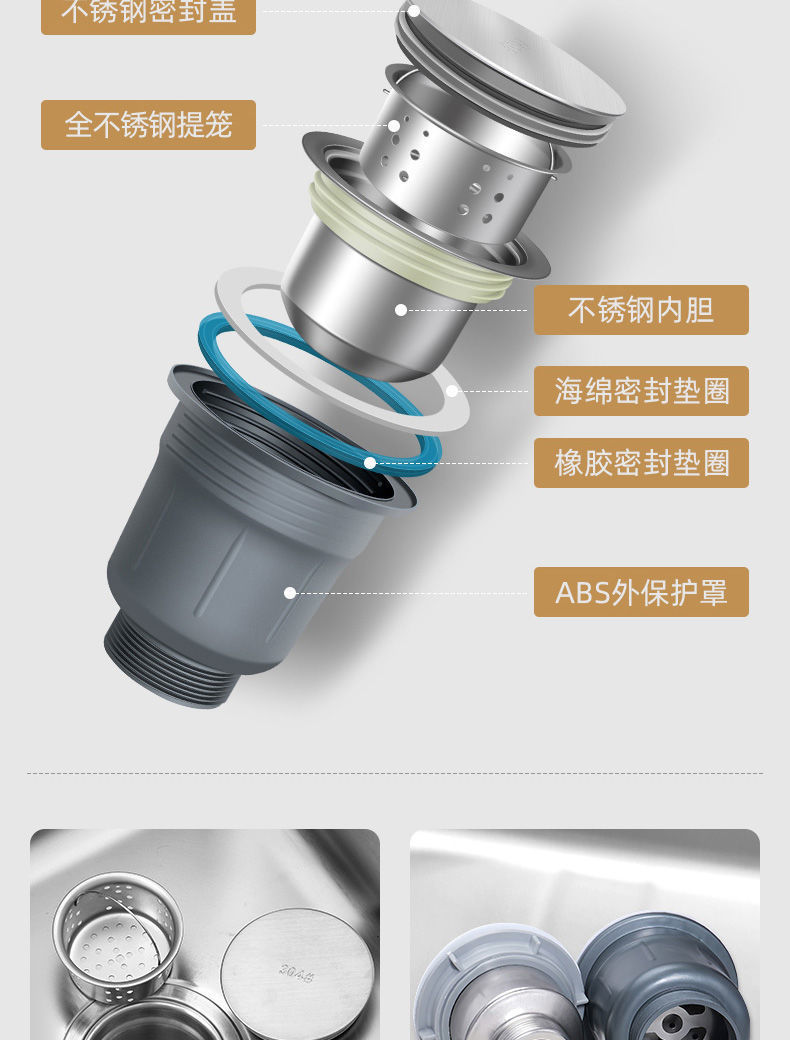 • [두꺼운 수제 단일 탱크] 45*40-패키지 C (싱크대 + 올스틸 배수구 + 식용