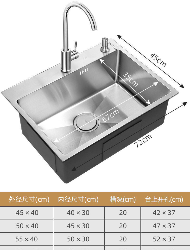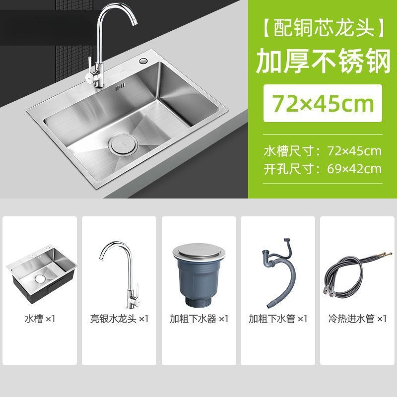 • [두꺼운 수제 단일 슬롯] 72*45-패키지 B(싱크대 + 모든 강철 배수구 + 구리 코어