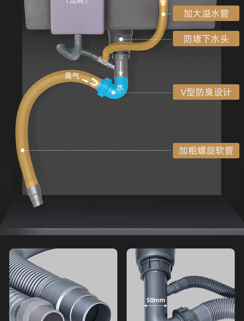 • [두꺼운 수제 단일 탱크] 50*40-패키지 C (싱크대 + 올스틸 배수구 + 식용