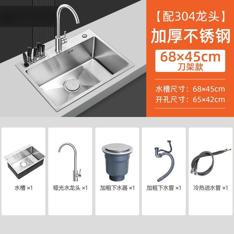 • [두꺼운 수제 단일 슬롯] 68*45 칼 홀더 모델 - 패키지 C(싱크대 + 모든 강철 배수구)