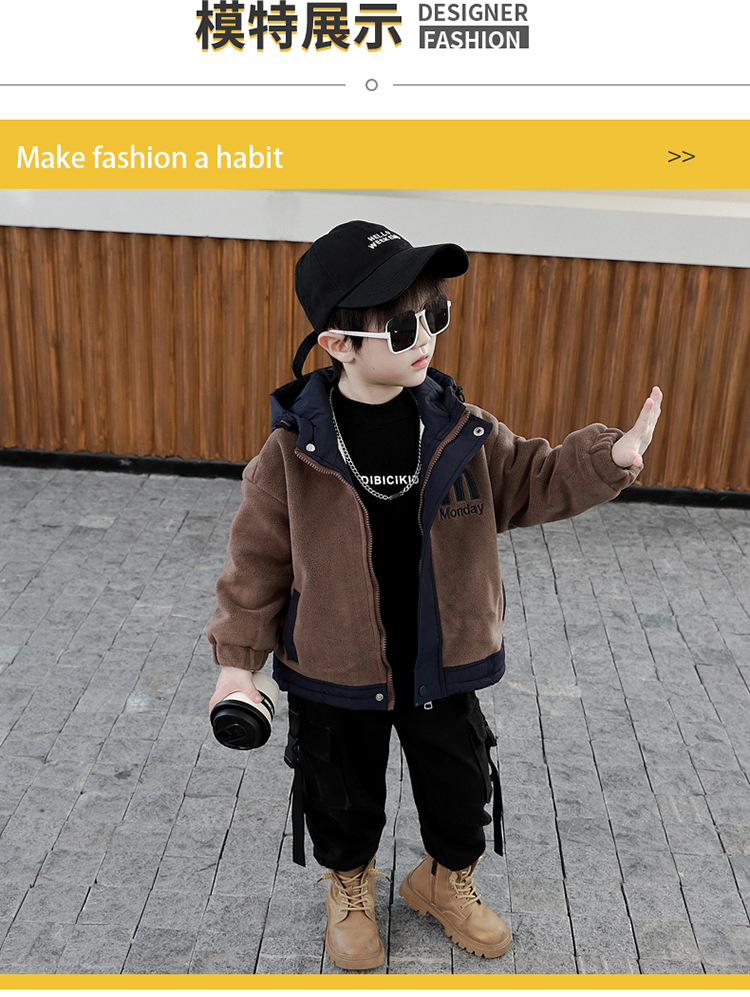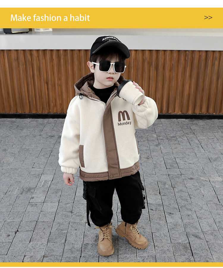 남아용 플리스 재킷 가을/겨울 2025 중소 어린이용 후드 상의 남아용 겨울 두꺼운 면옷 보온스토어 가기