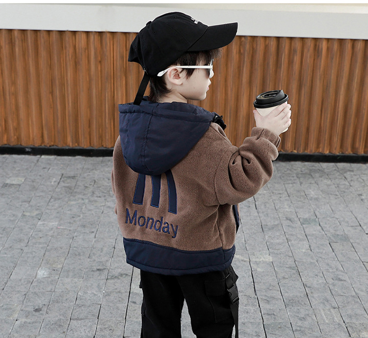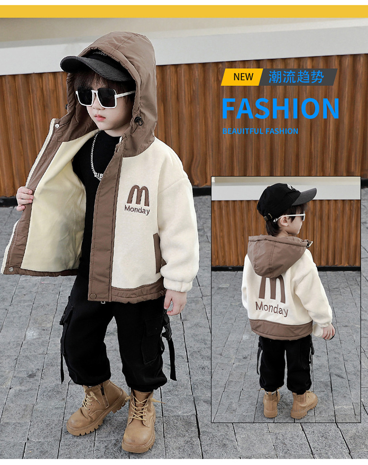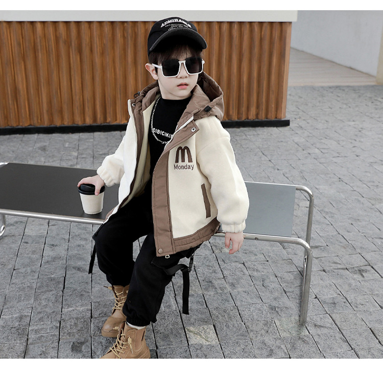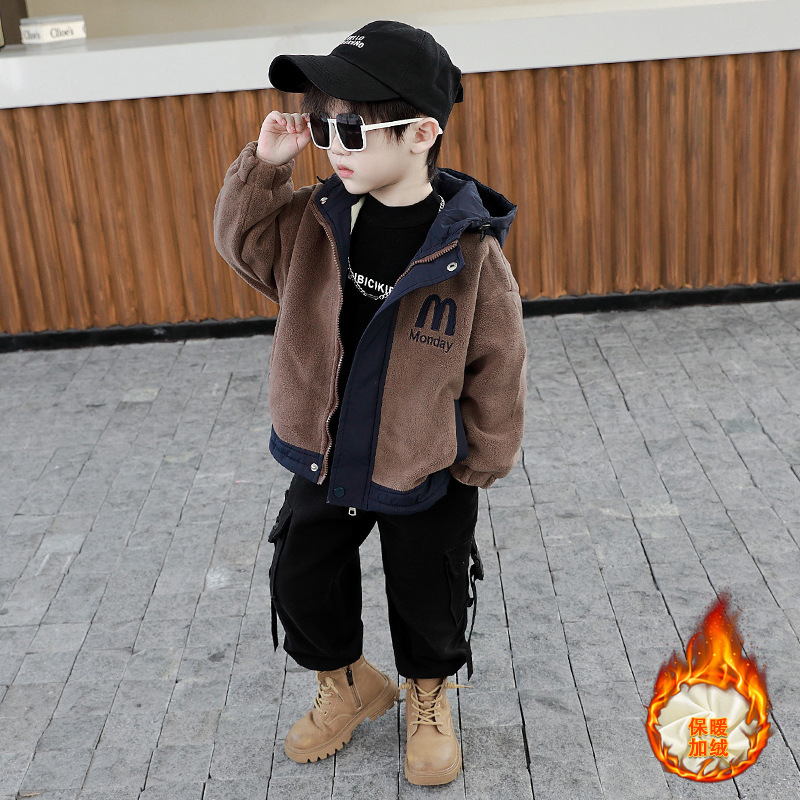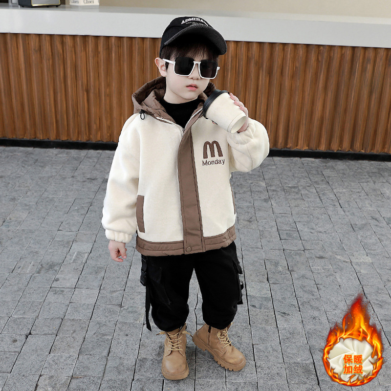 남아용 플리스 재킷 가을/겨울 2025 중소 어린이용 후드 상의 남아용 겨울 두꺼운 면옷 보온