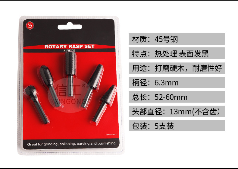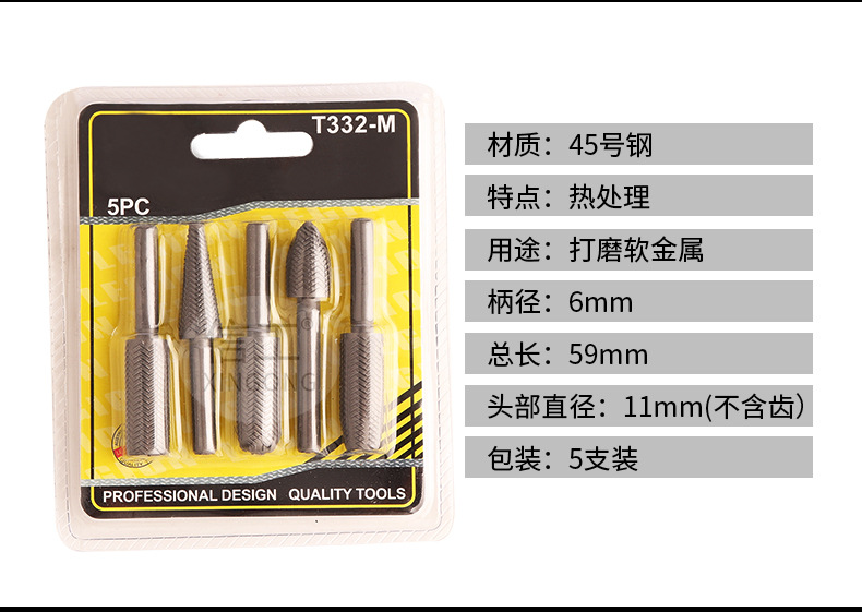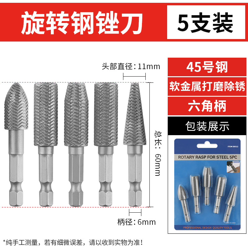 • A45 스틸 5종 세트 - 가는 이빨 - 부드러운 금속을 연마하는 육각형 손잡이 권장