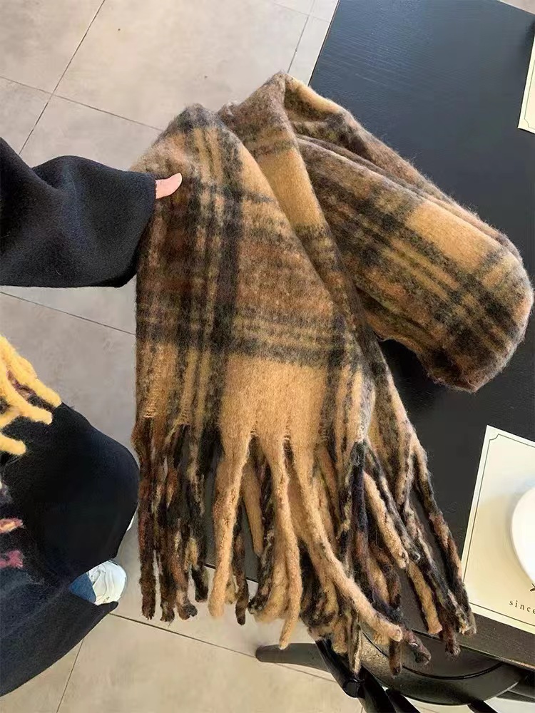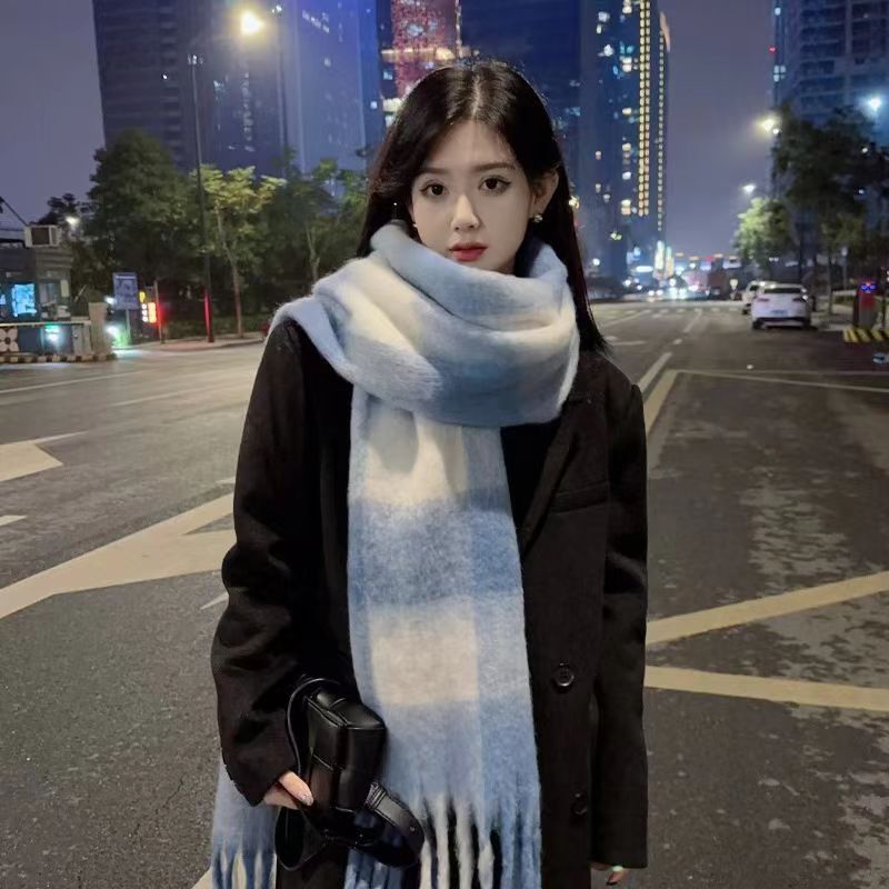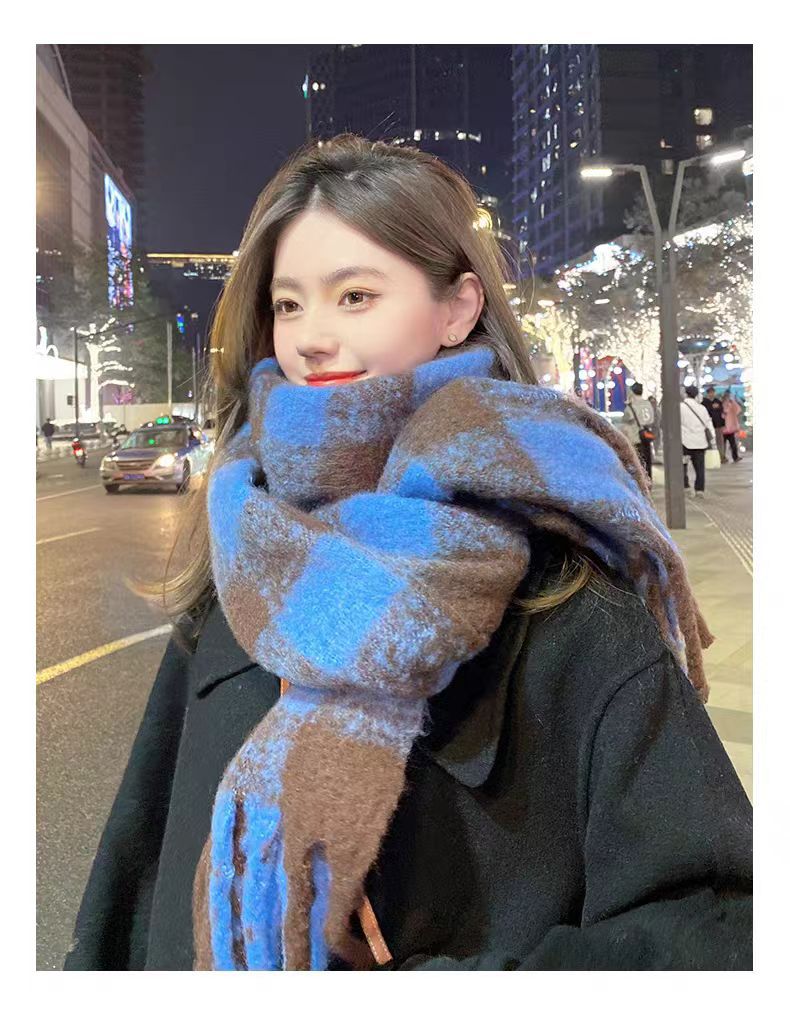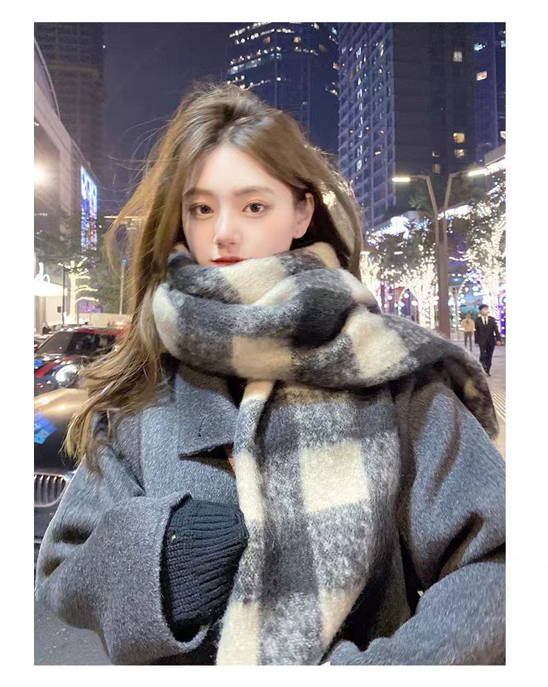 스카프 여성의 가을과 겨울 격자 무늬 2024 새로운 모헤어 분위기 올 매치 학생 따뜻한 두꺼운 커플 목 패션스토어 가기