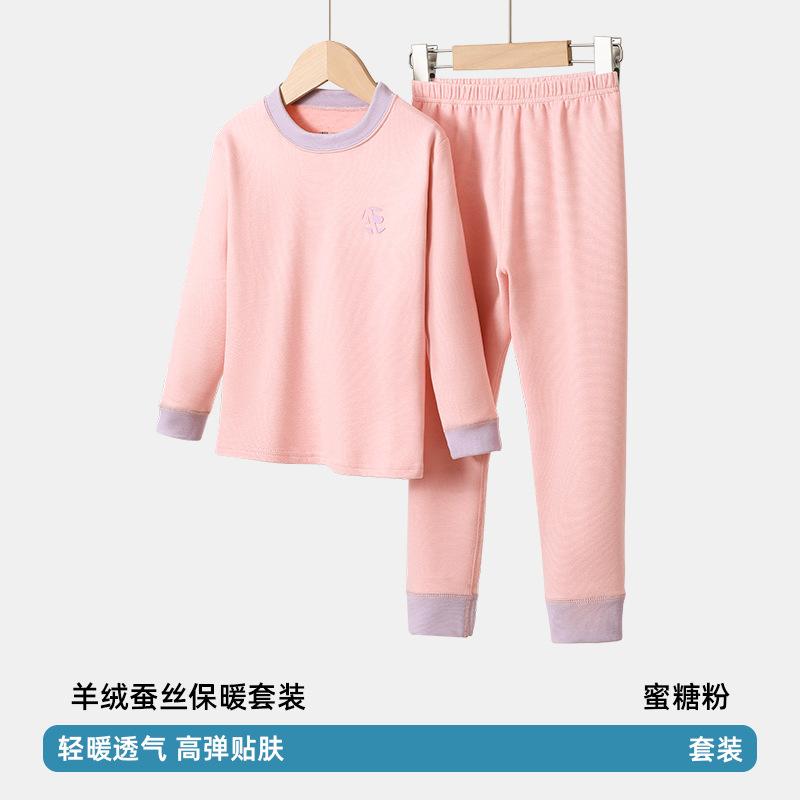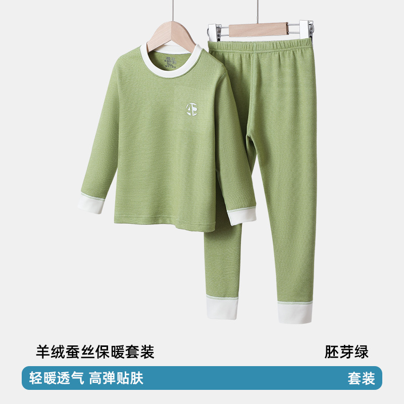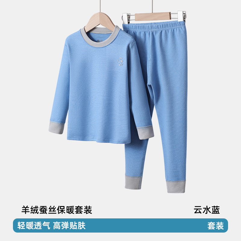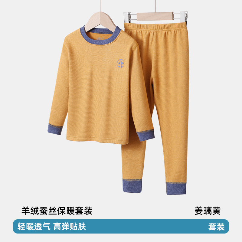 캐시미어 실크 어린이 열 속옷 클래스 A 소년 아기 양면 벨벳 독일 어린이 가을 옷과 바지 세트