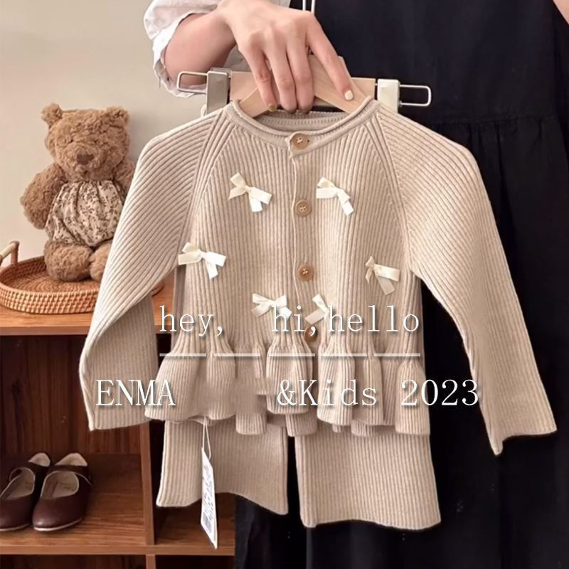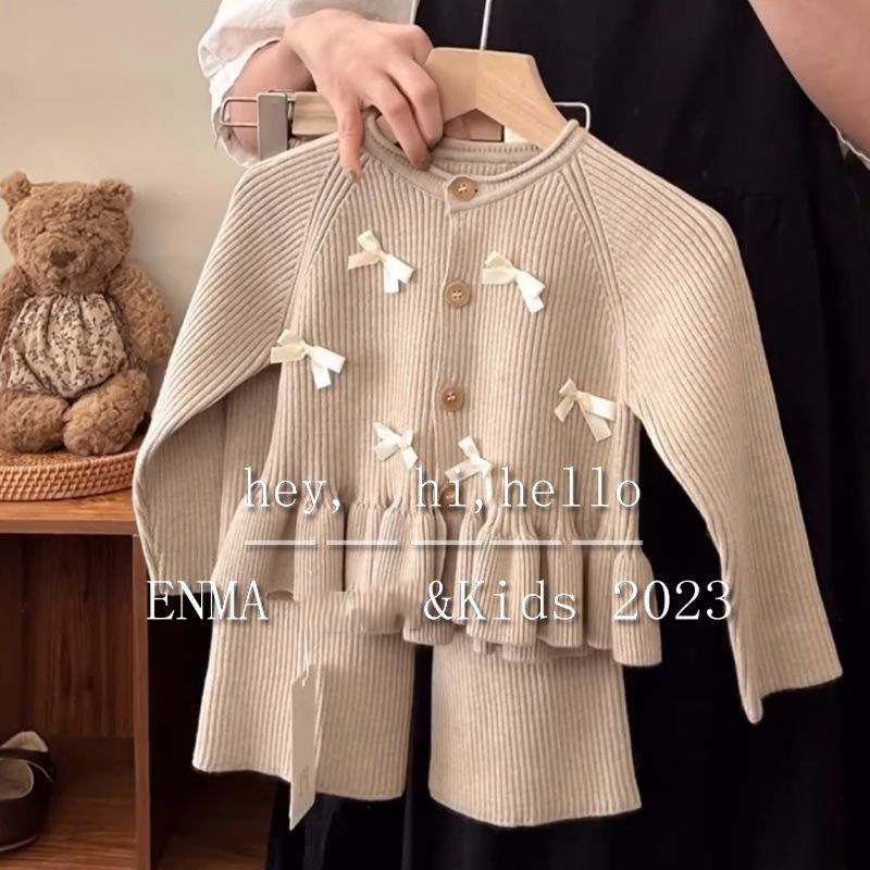 한국 아동복 캐주얼 가을 소녀 니트 세트 아기 달콤한 활 긴 소매 스웨터 카디건 캐주얼 바지스토어 가기