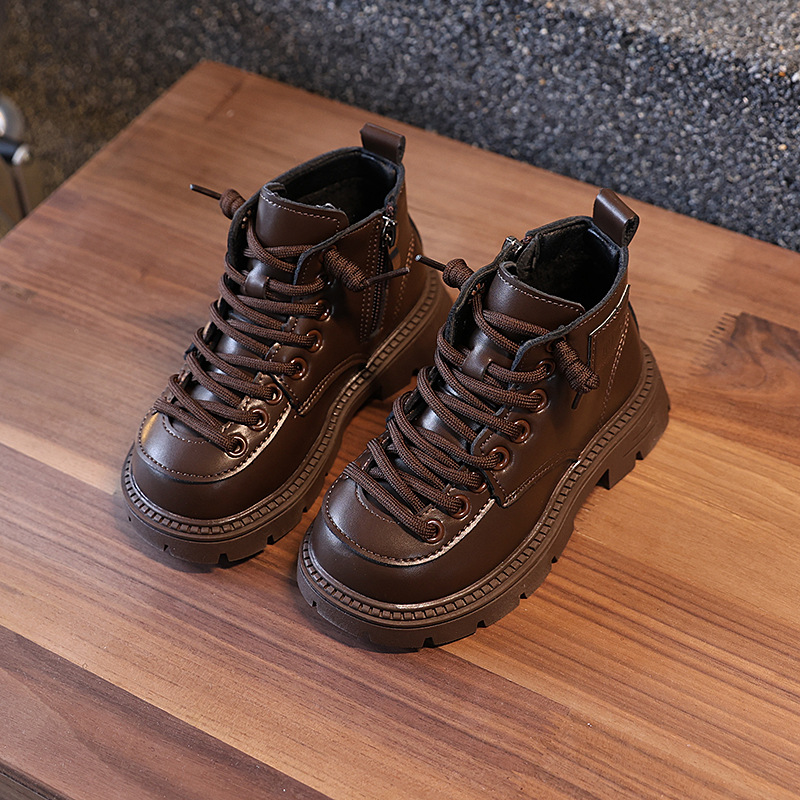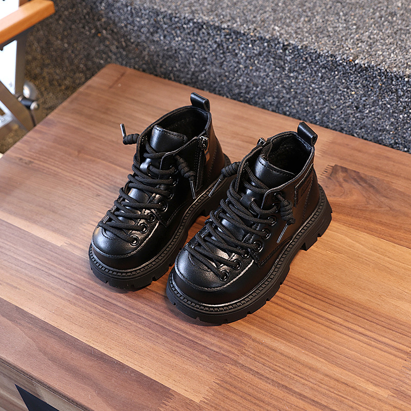 2 면화 어린이 신발 도매 2024 가을과 겨울 새로운 어린이 가죽 신발 패션 소년과 소녀 편안한 마틴 부츠 짧은 부츠스토어 가기