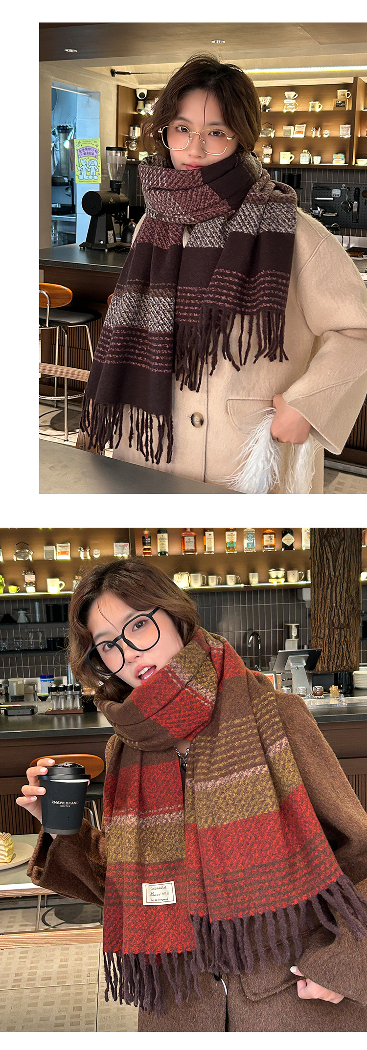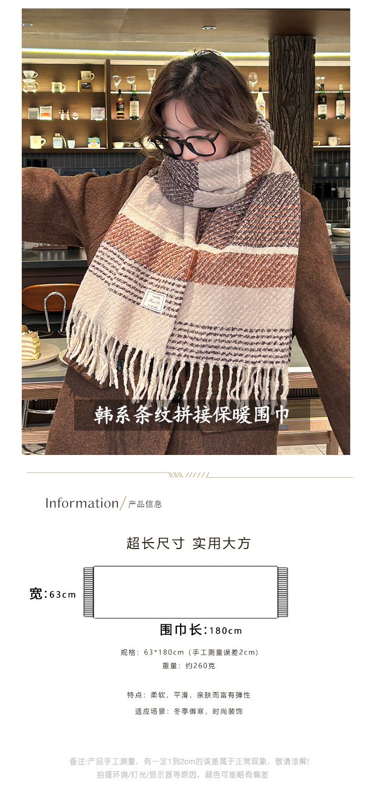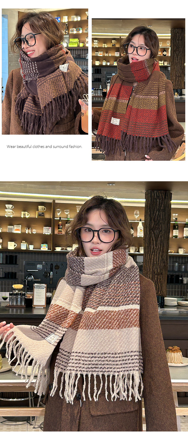 새로운 스카프 여자 겨울 마일 라드 컬러 모든 경기 따뜻한 스카프 술 줄무늬 간단한 목도리 모방 캐시미어 스카프스토어 가기