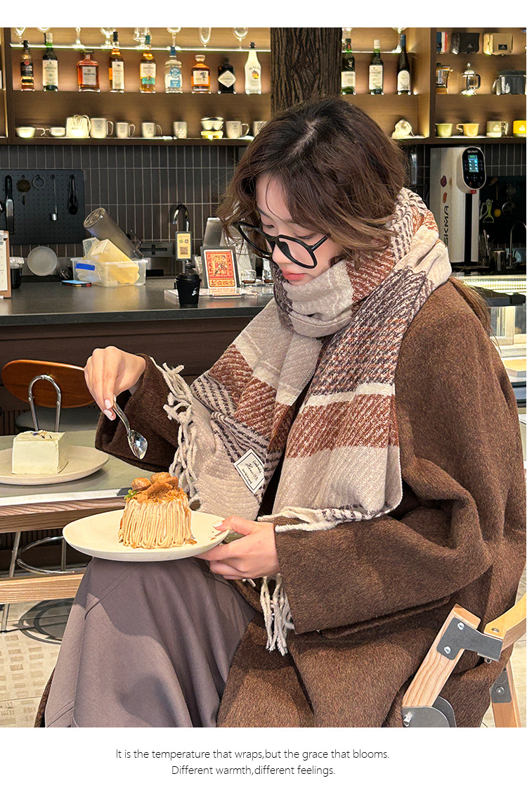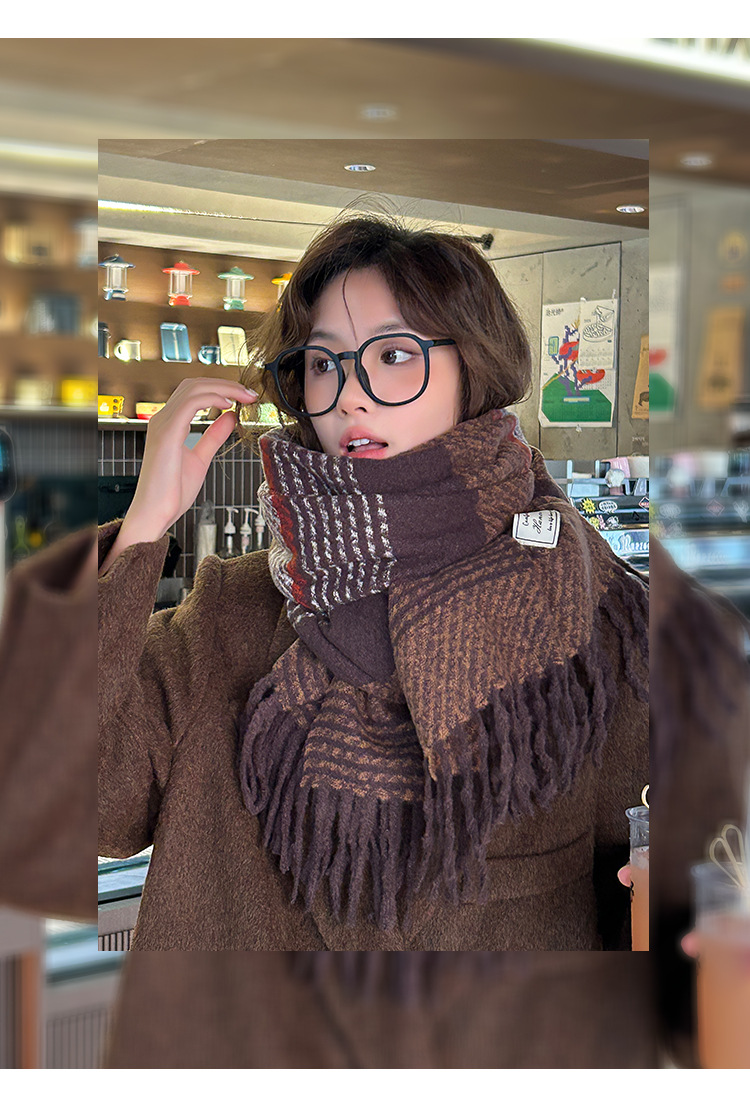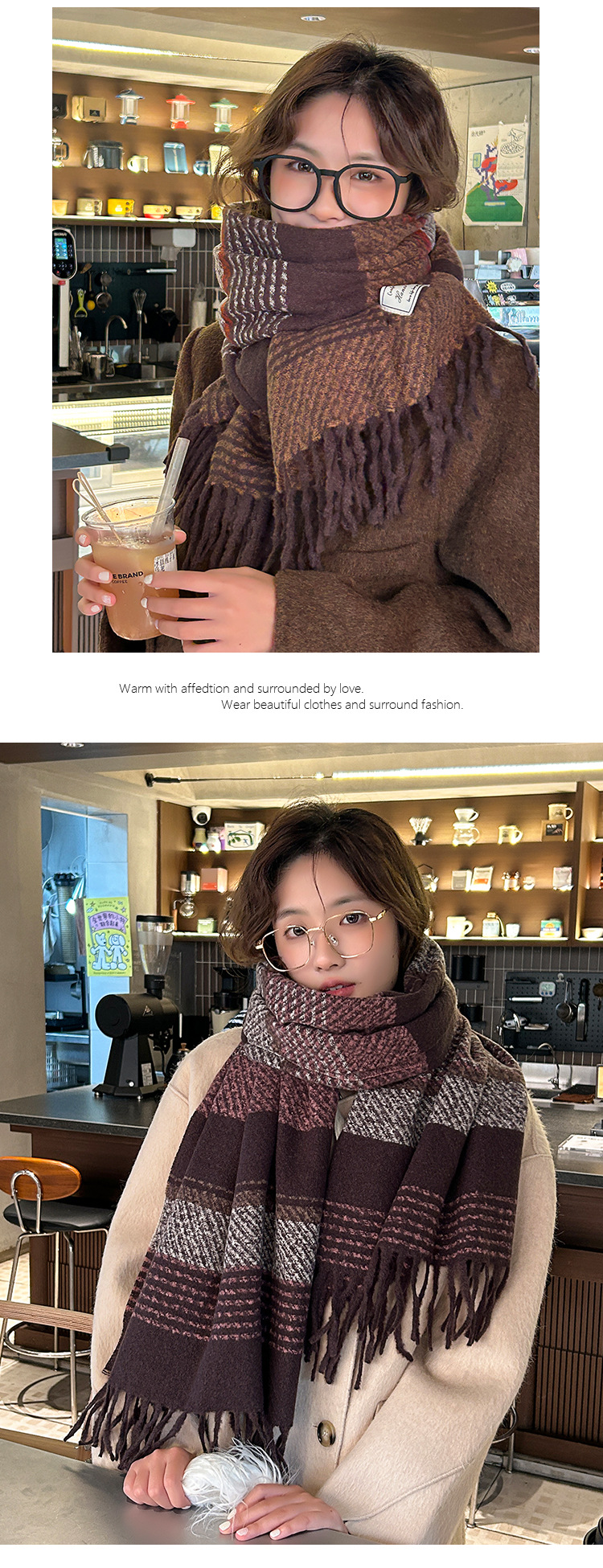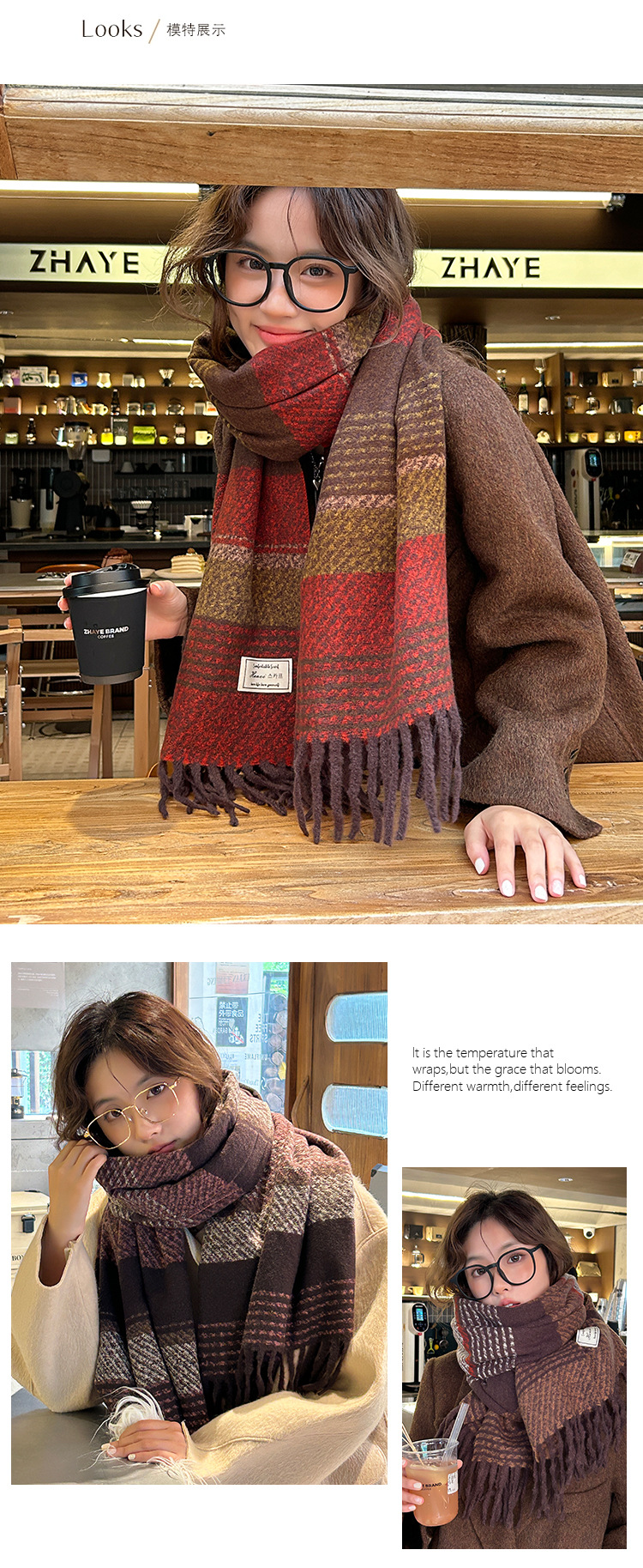 새로운 스카프 여자 겨울 마일 라드 컬러 모든 경기 따뜻한 스카프 술 줄무늬 간단한 목도리 모방 캐시미어 스카프스토어 가기