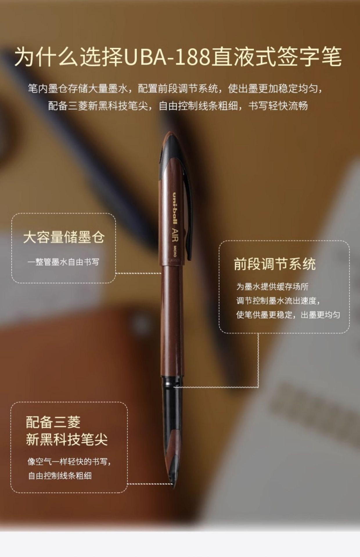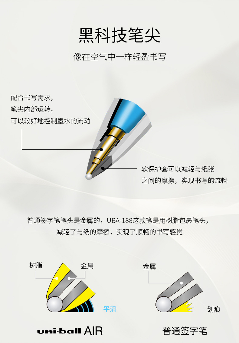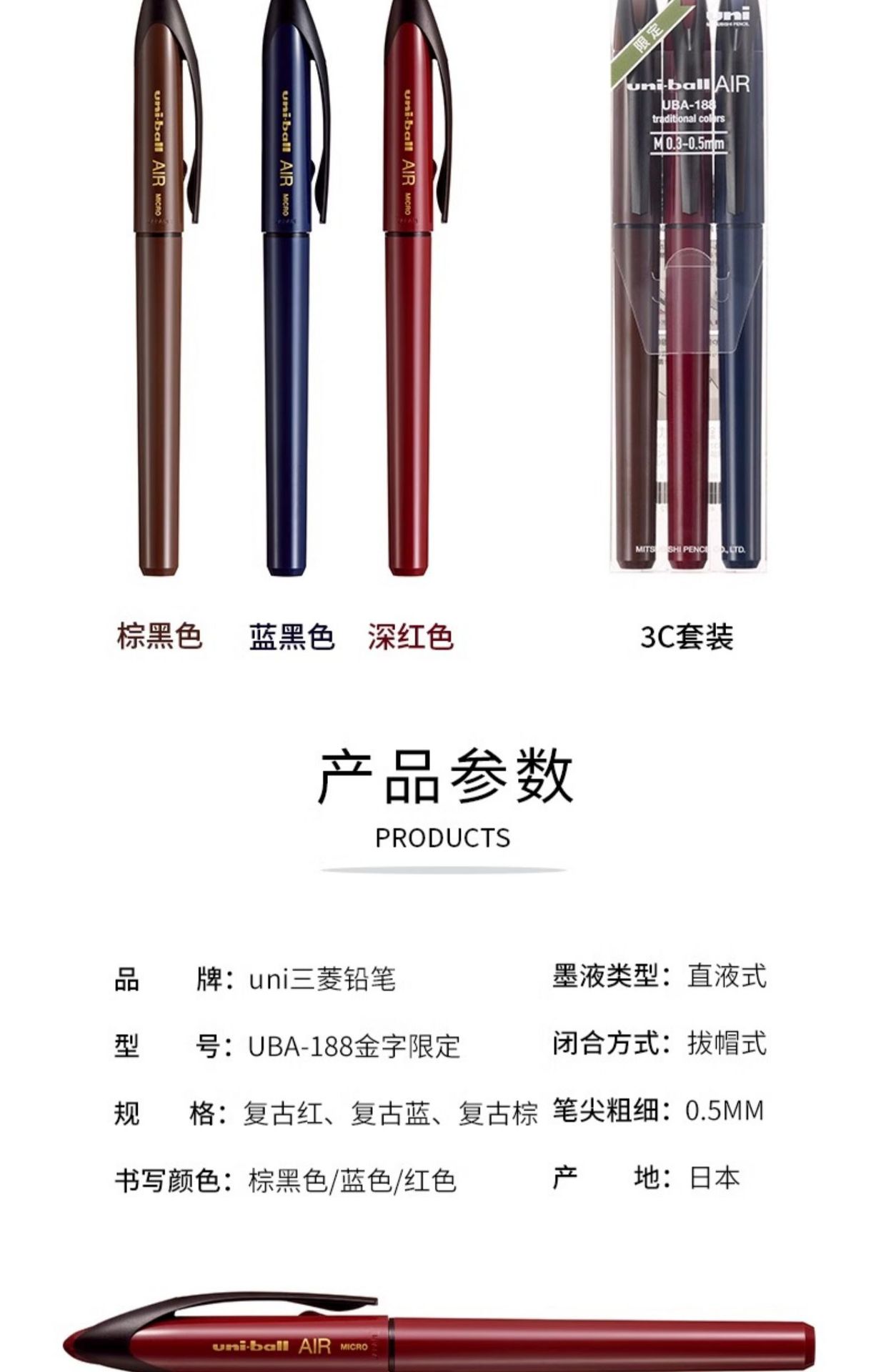 일본 유니미쓰비시 젤 펜 UBA-188 골드 정의 블랙 기술 볼 에어 드로잉 펜 0.5mm/0.7
