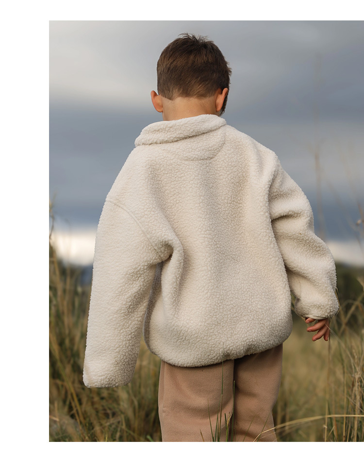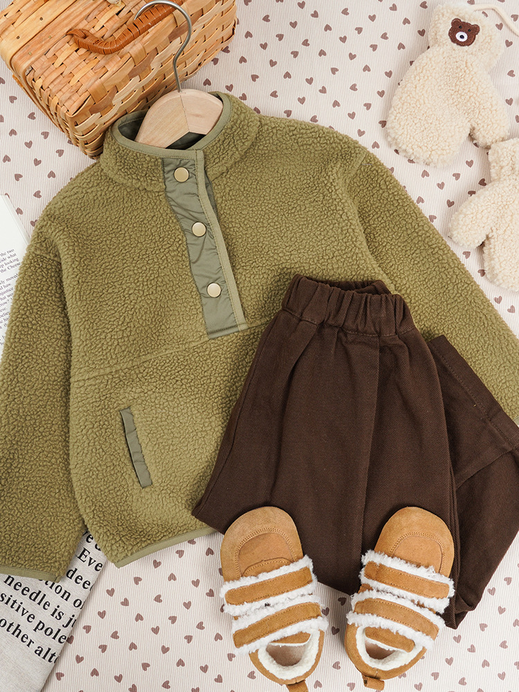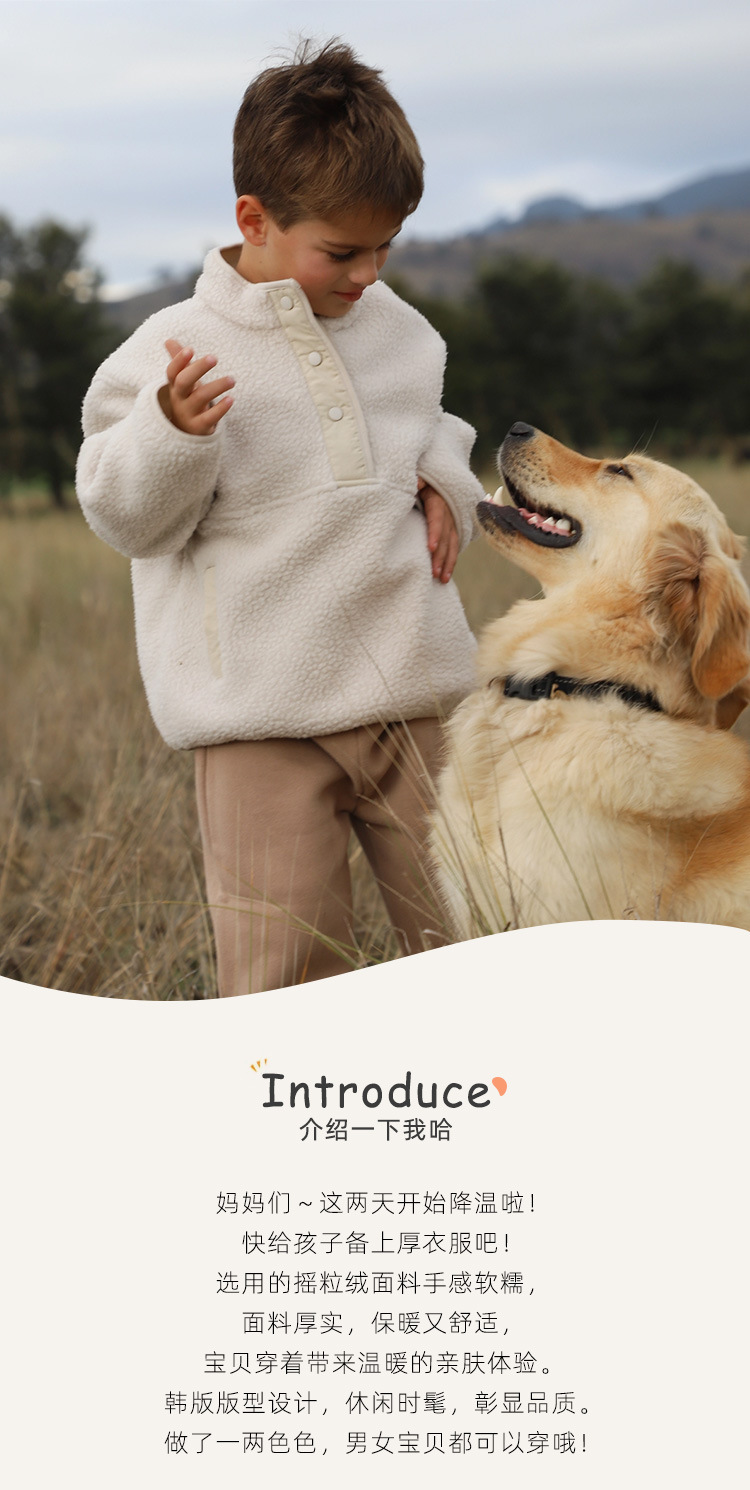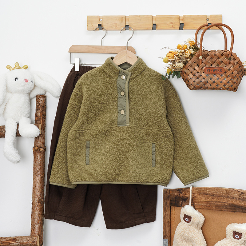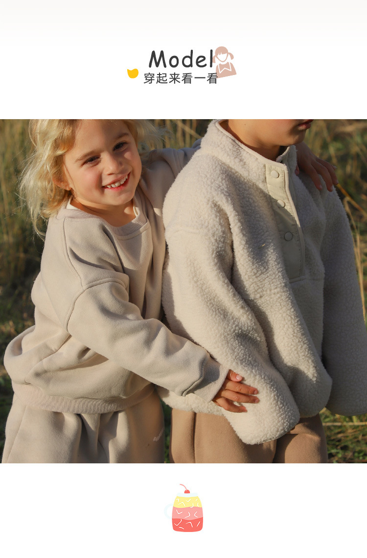 단색 폴라 플리스 어린이를위한 따뜻한 스웨터 가을과 겨울 새로운 스타일 세트 칼라 긴 소매 탑 느슨한 캐주얼 풀오버 남성 및 여성스토어 가기