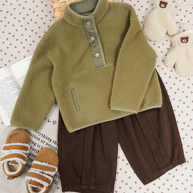 단색 폴라 플리스 어린이를위한 따뜻한 스웨터 가을과 겨울 새로운 스타일 세트 칼라 긴 소매 탑 느슨한 캐주얼 풀오버 남성 및 여성