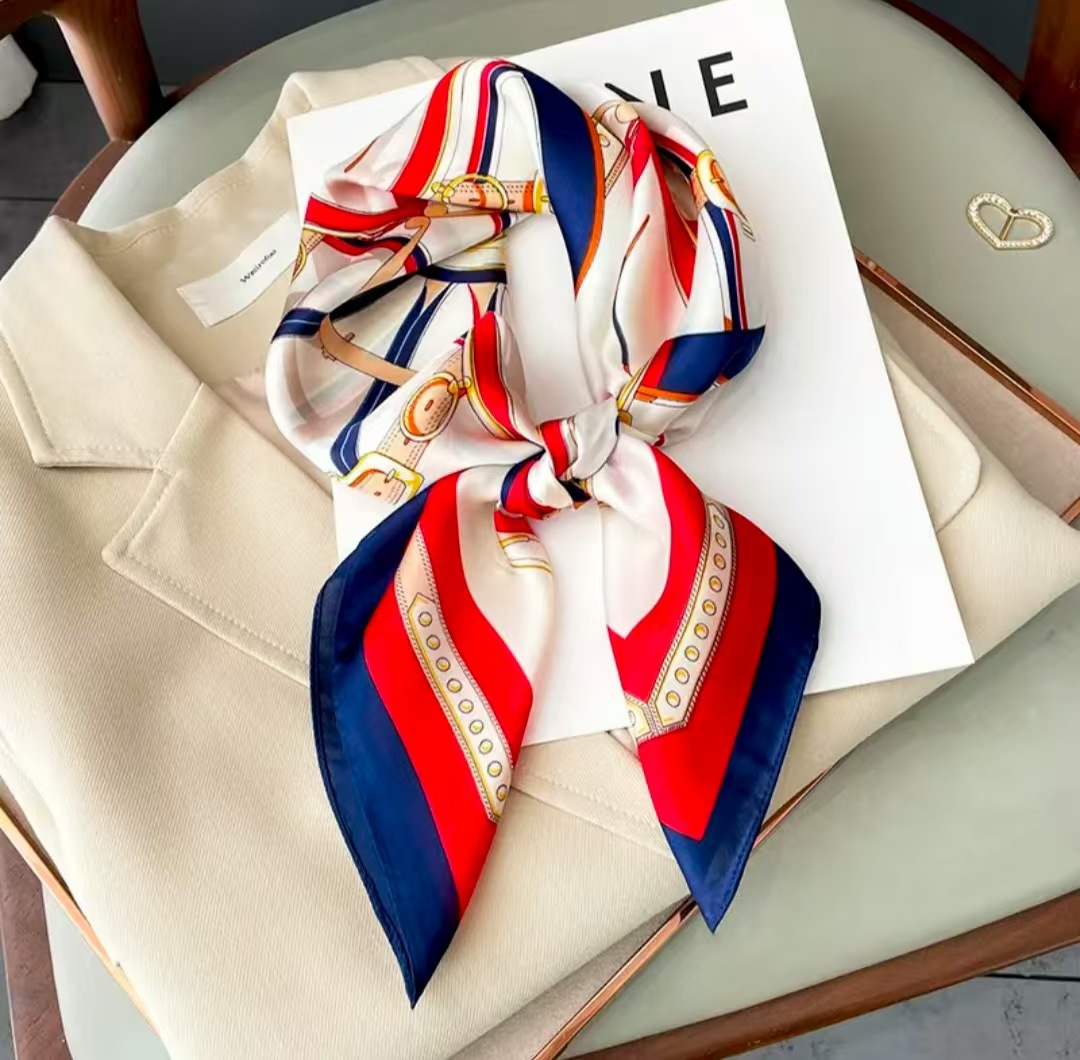 • 링 가죽 버클 70 스퀘어 스카프-네이비 블루 레드