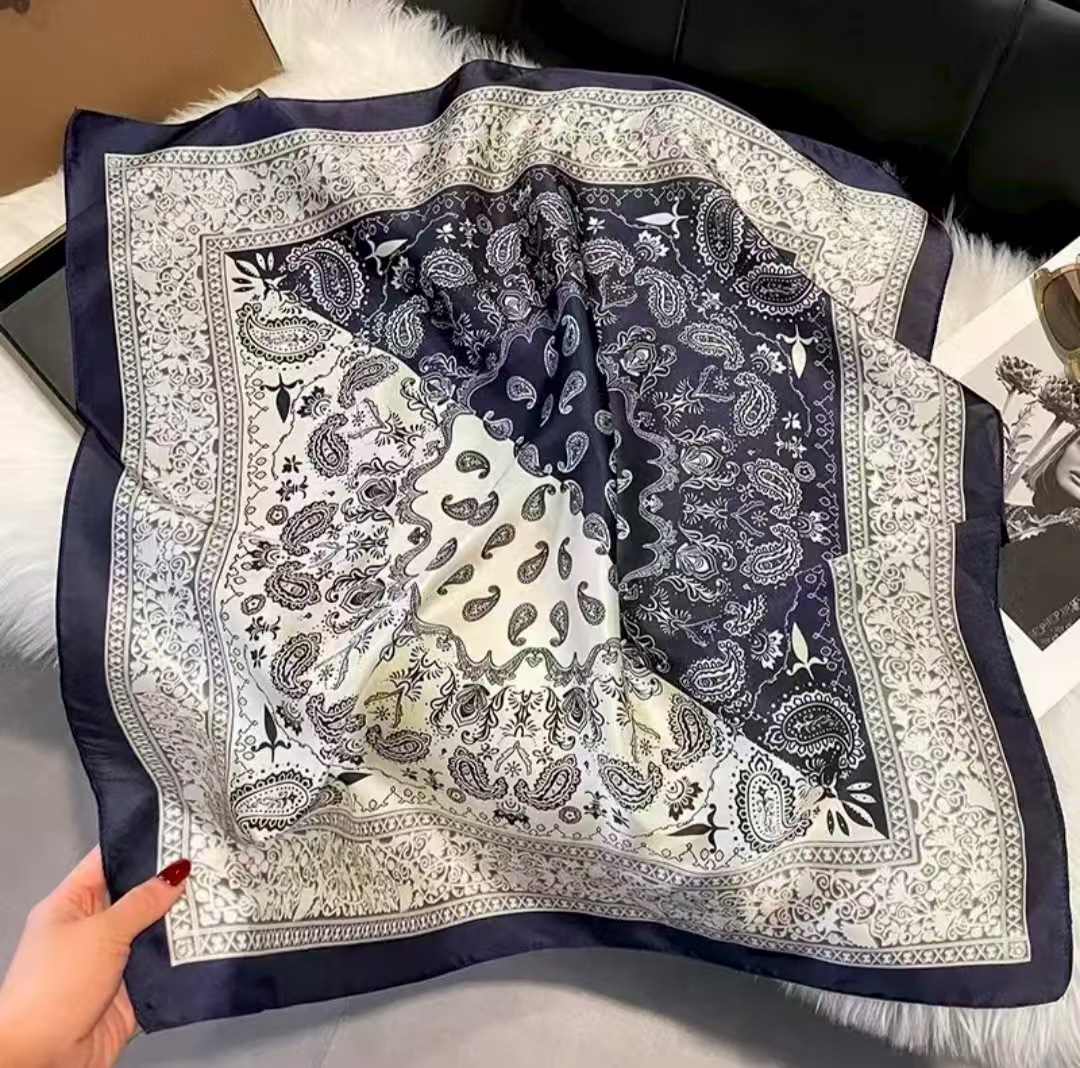 • Yilu에는 70개의 정사각형 스카프가 있습니다 - 검정색과 파란색