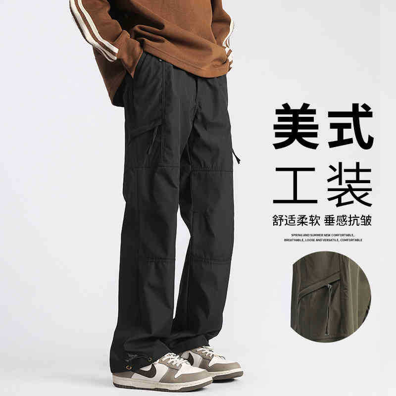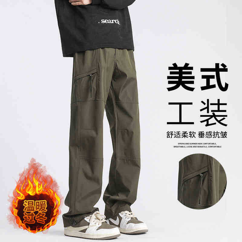NASA 카키 가을과 겨울 2024 미국식 발수 크레인 바지를 입고 남성 기능성 스트레이트 바지 패션 브랜드스토어 가기
