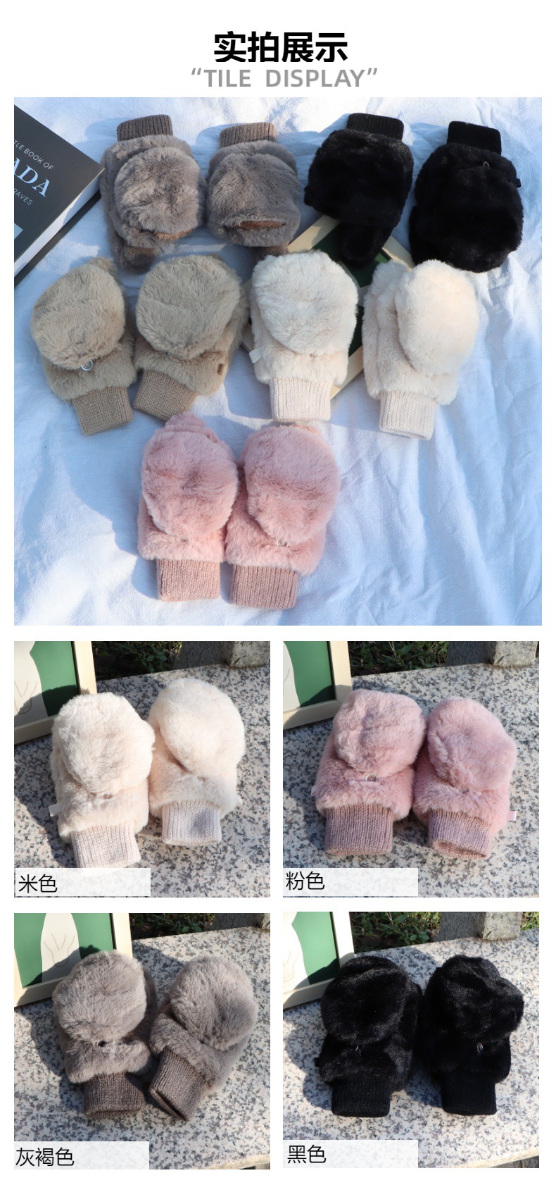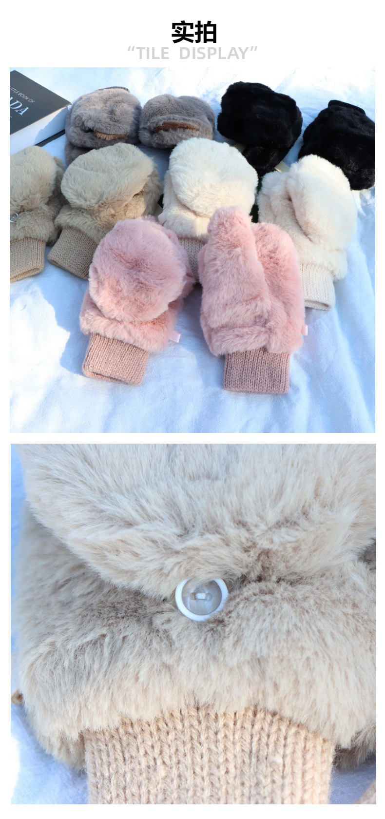 한국판 장갑 여성 겨울 야외 가방 엄지 기모 두꺼운 따뜻한 자전거 운전 반 손가락 쓰기 봉제 장갑스토어 가기