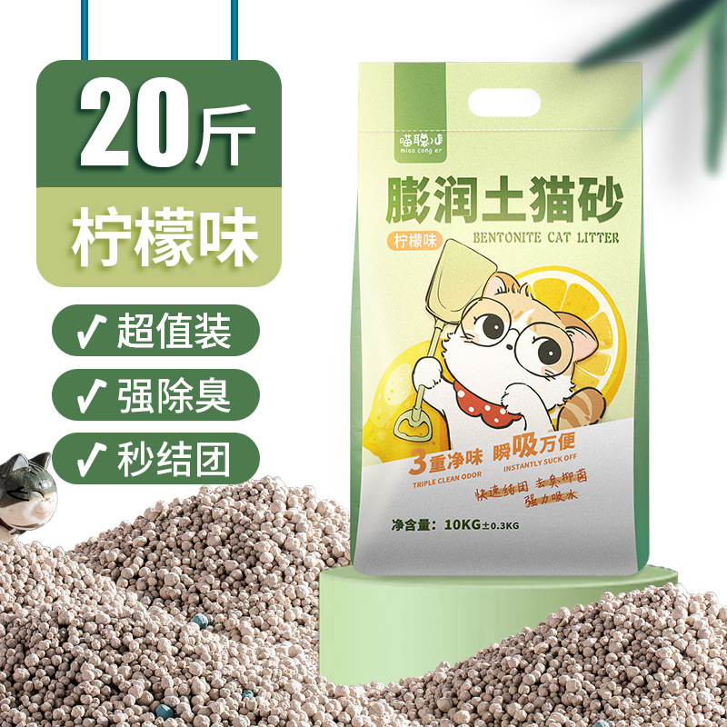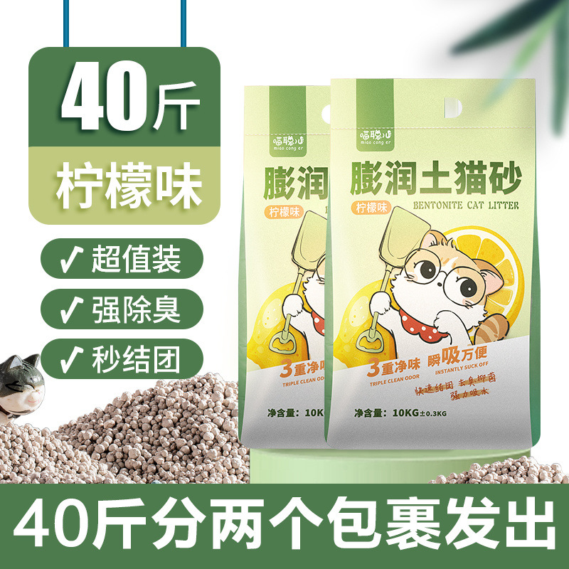 레몬 고양이 쓰레기 10kg 탈취제 덩어리 낮은 먼지 10kg 벤토나이트 40kg 도매 고양이 쓰레기 20kg 공장 도매