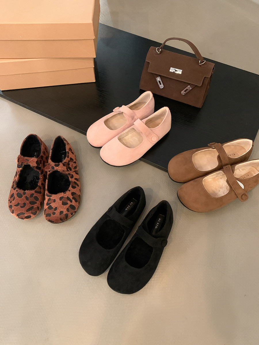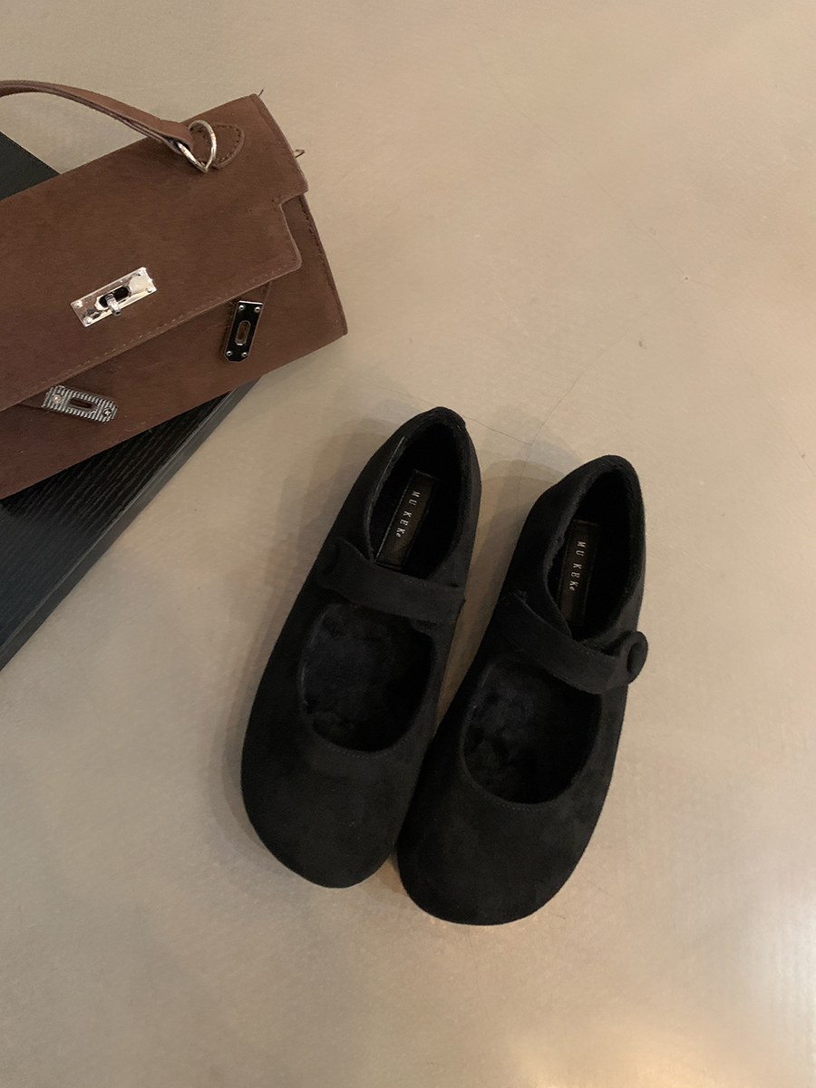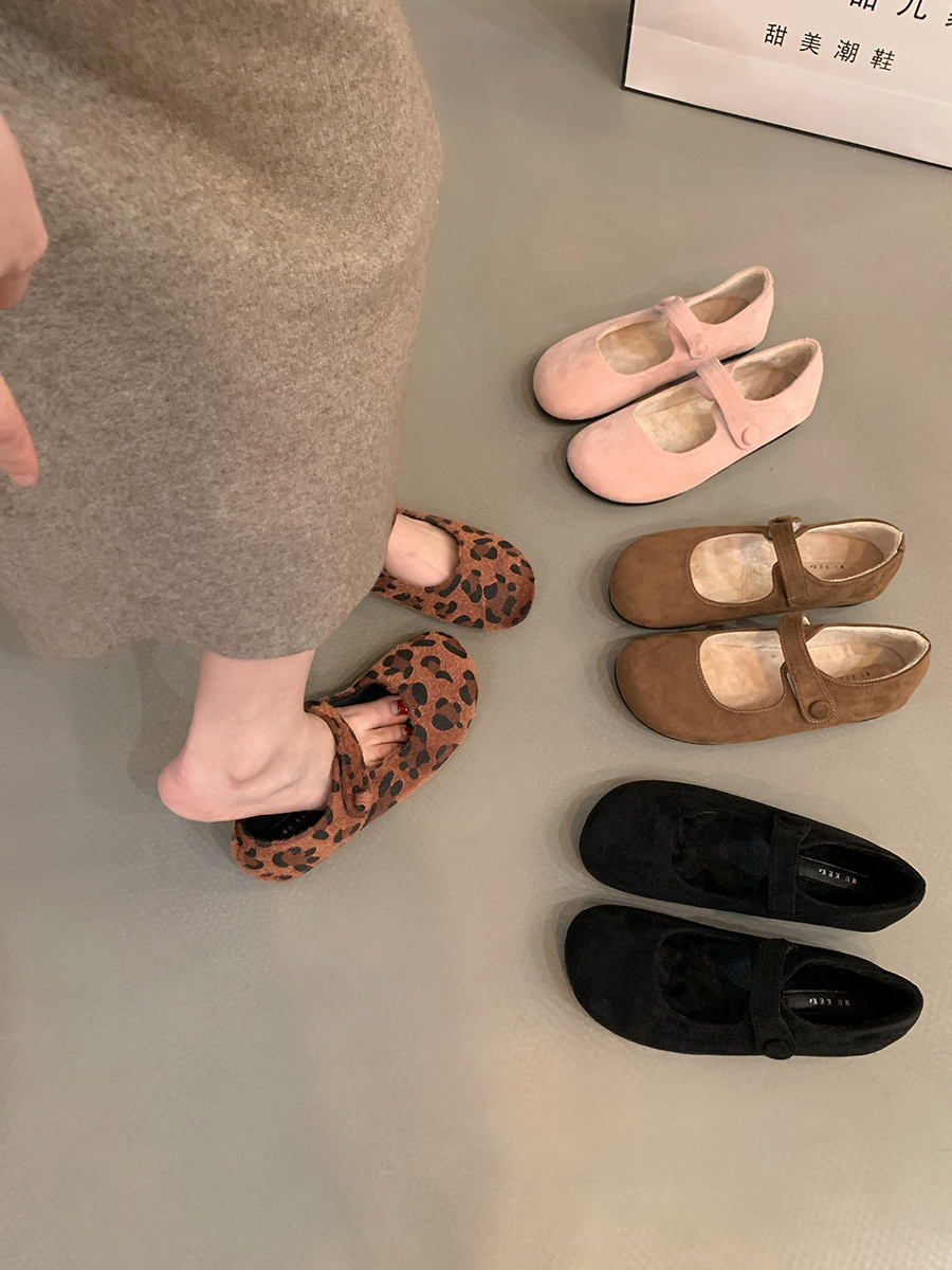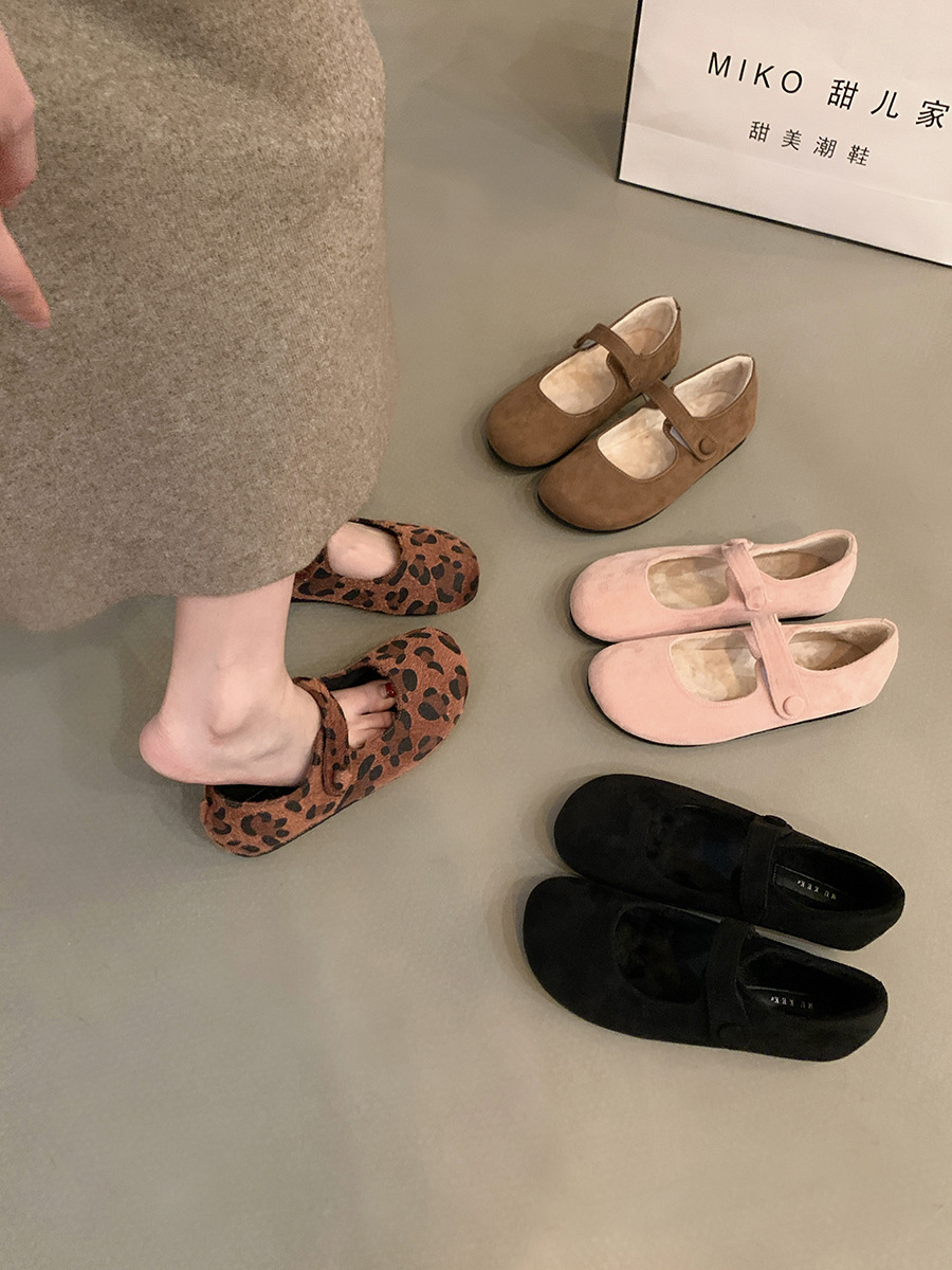 기모 면화 여성 편평한 가을과 겨울 새로운 싱글 레이어 신발 레트로 캐주얼 따뜻한 캐주얼 한국 스타일 핑크 메리 제인 신발