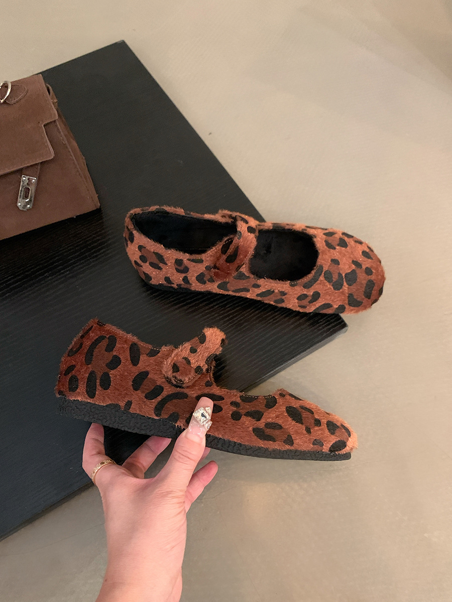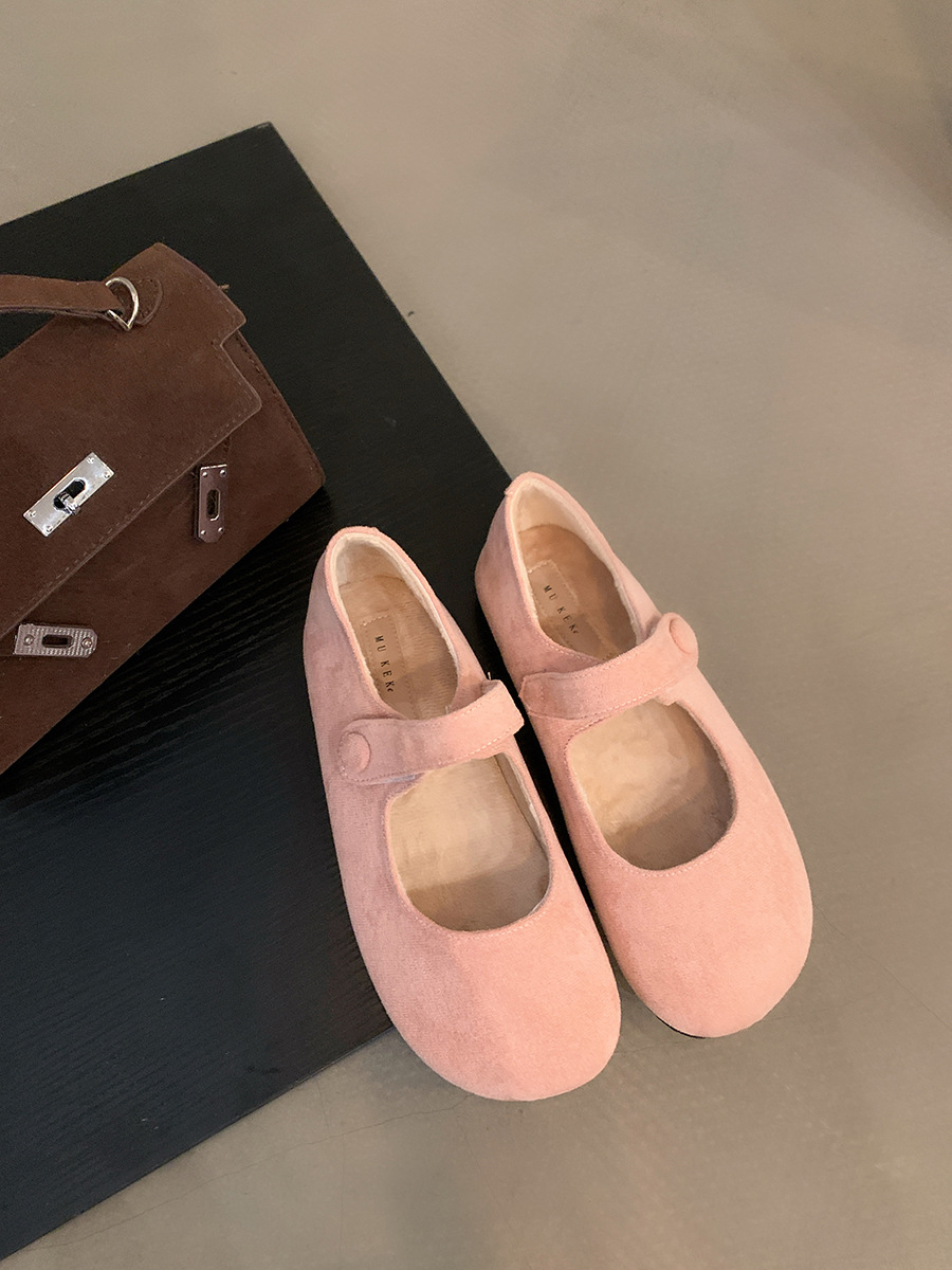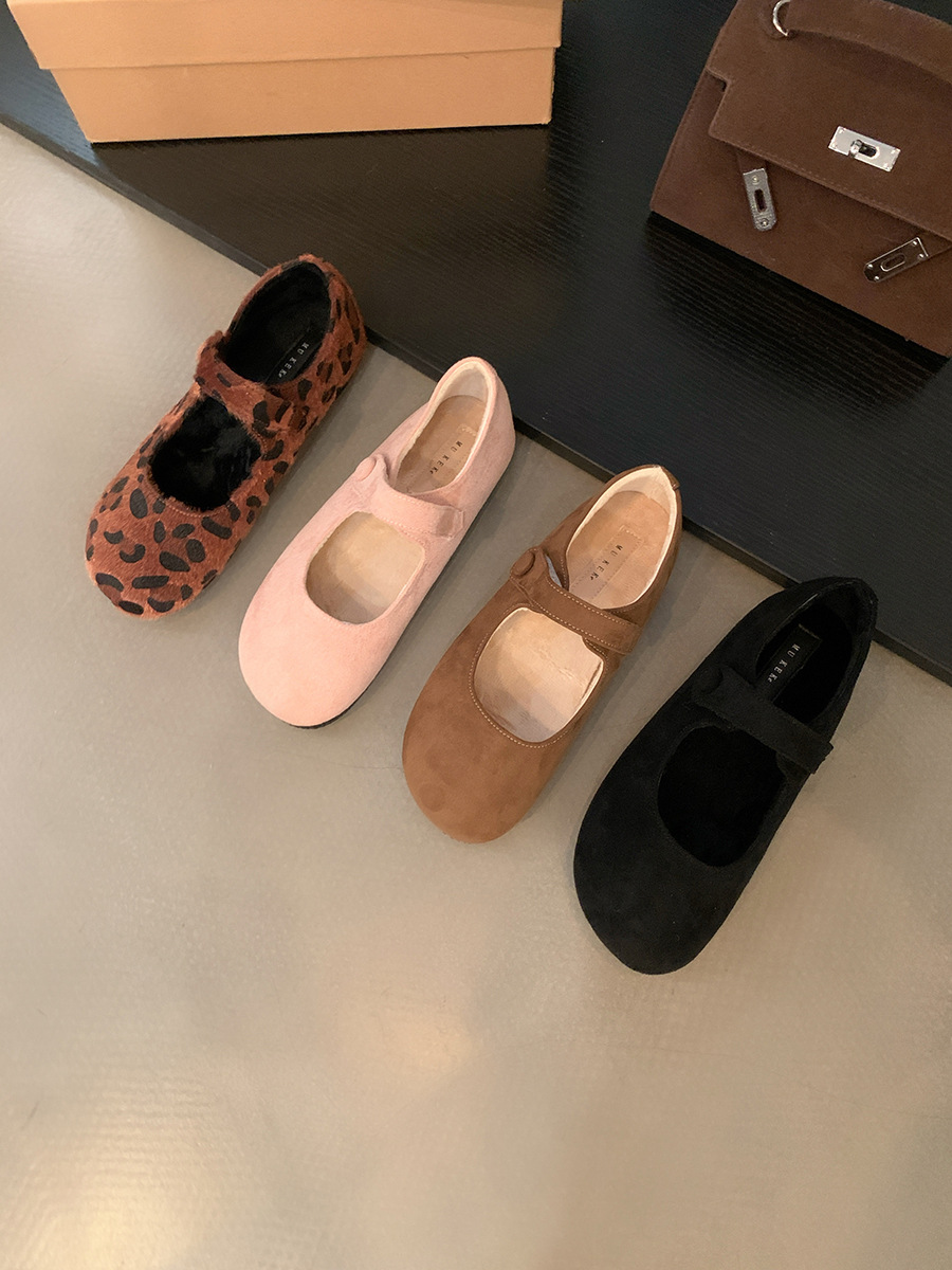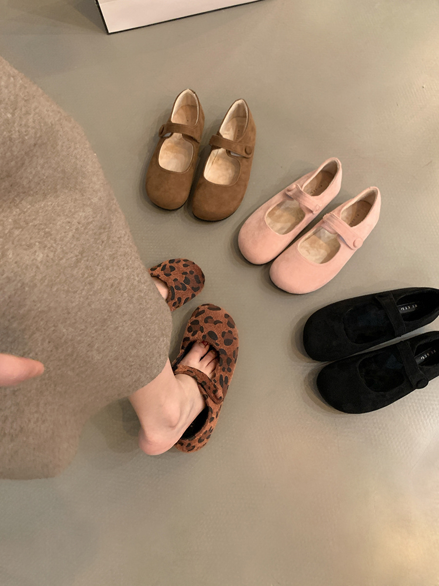 기모 면화 여성 편평한 가을과 겨울 새로운 싱글 레이어 신발 레트로 캐주얼 따뜻한 캐주얼 한국 스타일 핑크 메리 제인 신발
