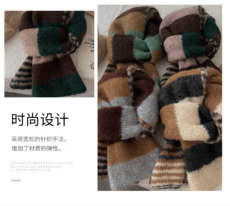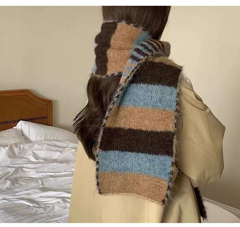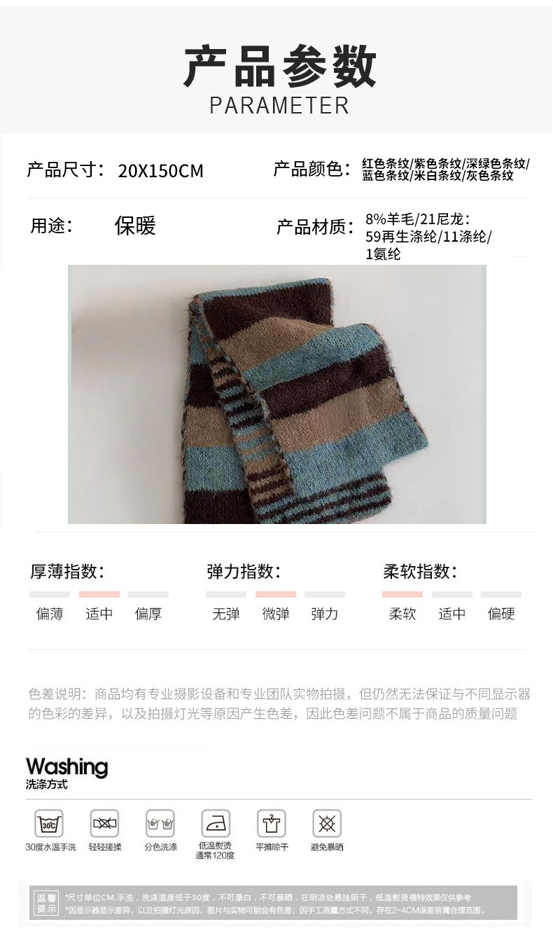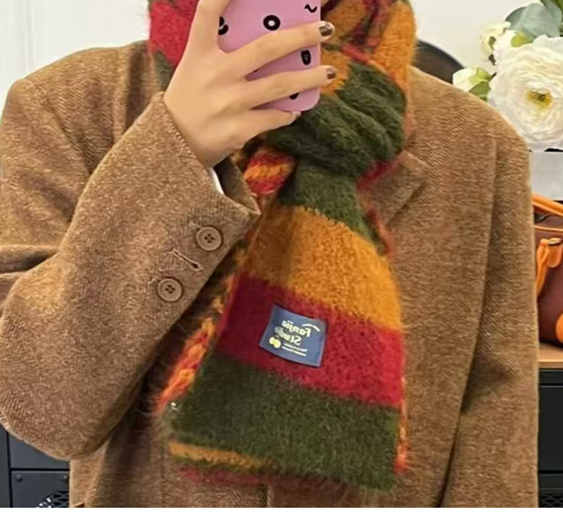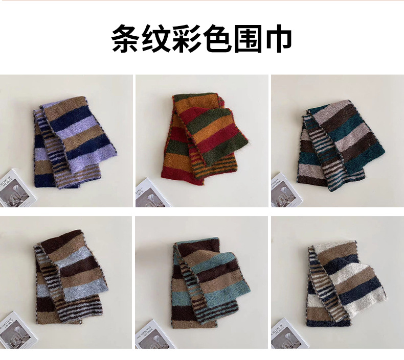 패션 조커 컬러 매칭 스카프 편안한 따뜻한 통기성 양모 줄무늬 컬러 스카프 가을과 겨울 방한 스카프스토어 가기