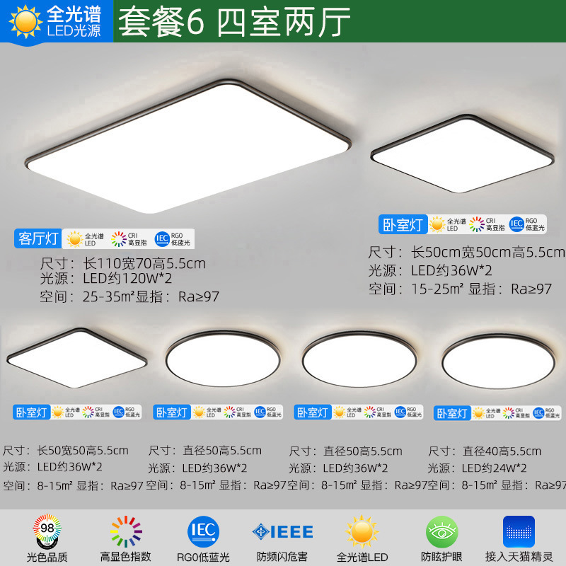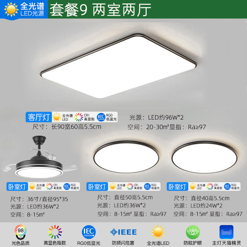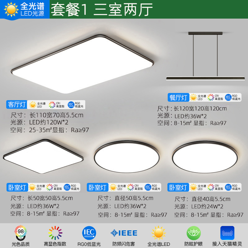 全屋套餐客厅灯全光谱卧室阳台高级感护眼吸顶灯简约大气中山灯具